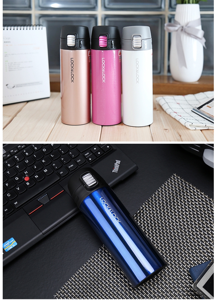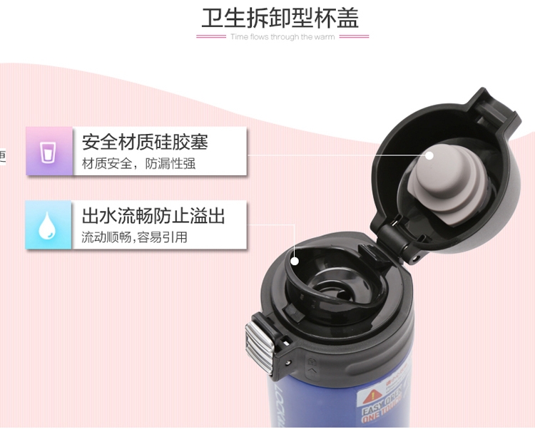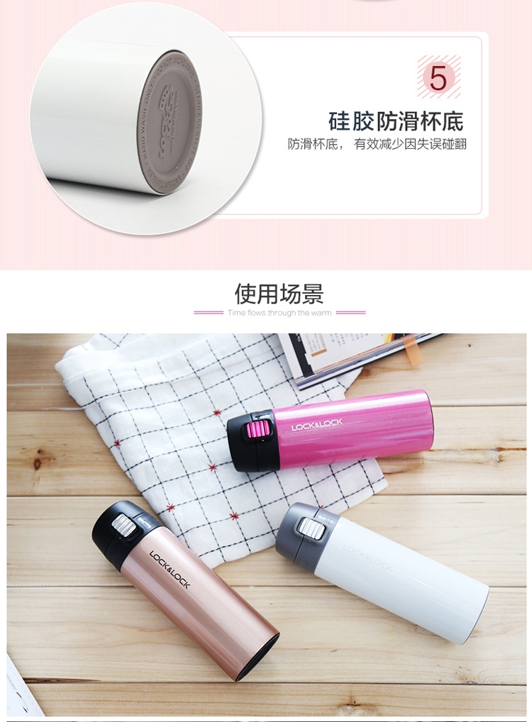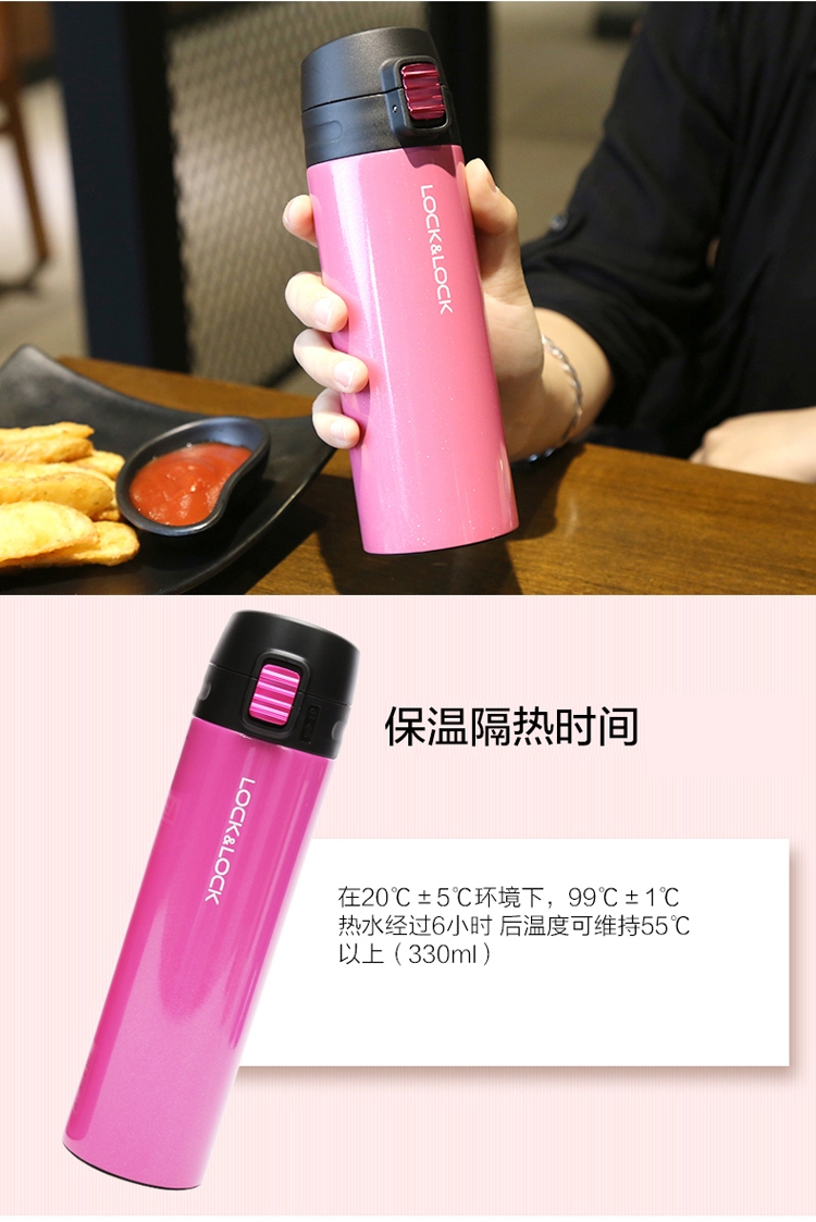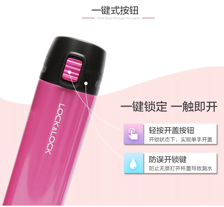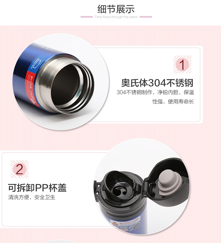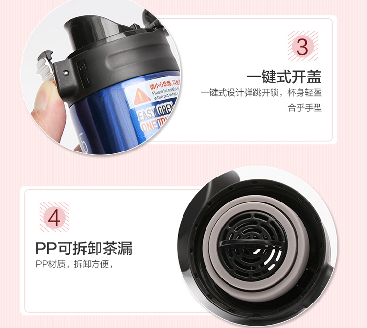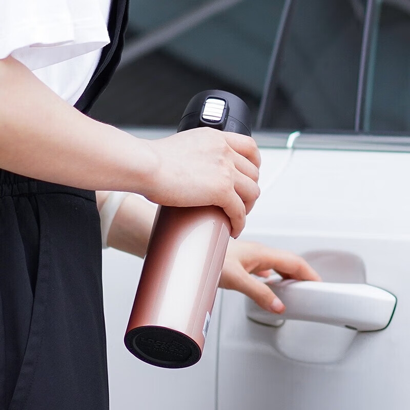 一键式设计,弹跳开锁、 杯身轻盈,合乎手型;先进的抽真空技术,保温效果更加持久;高级304不锈钢,材质稳定,不易生锈