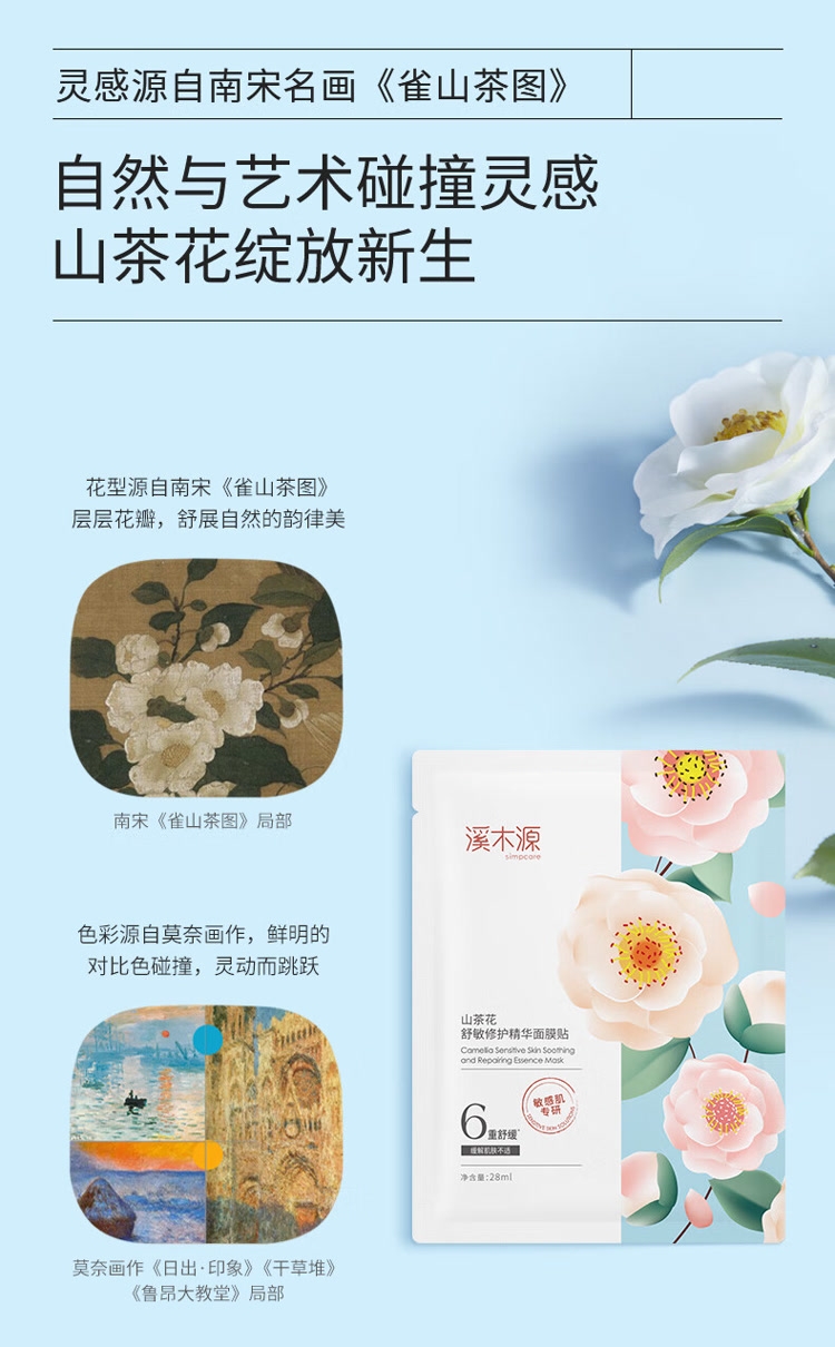 配置清单:溪木源山茶花舒敏修护精华面膜贴28ml*10片*2盒