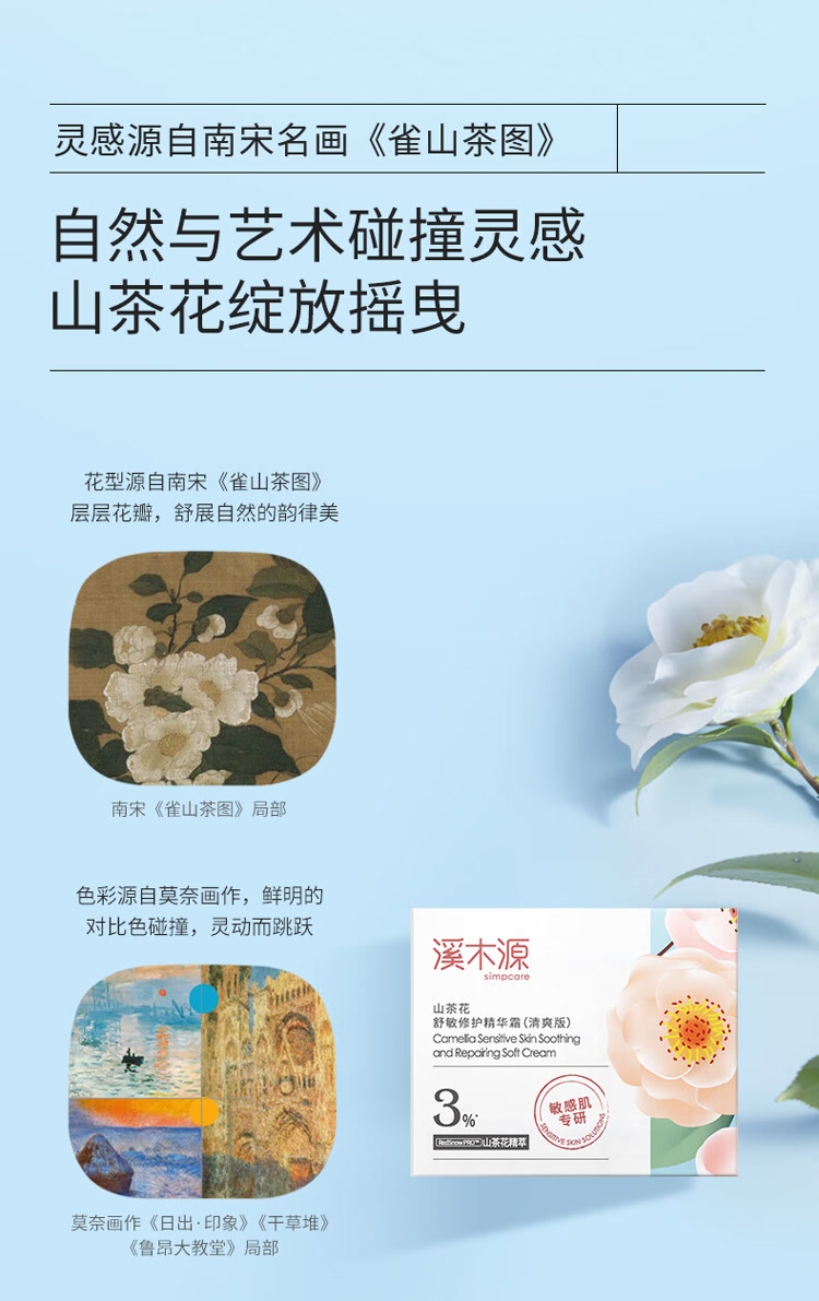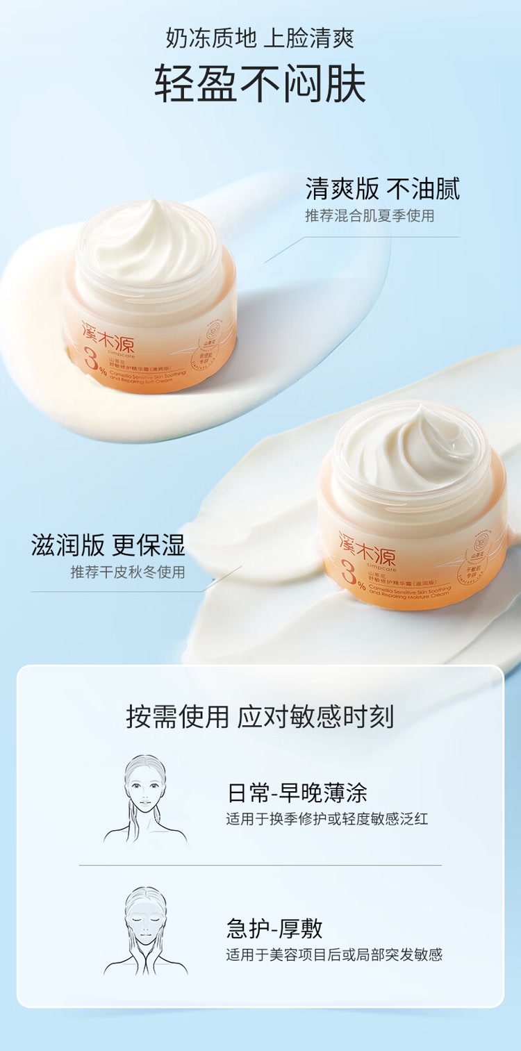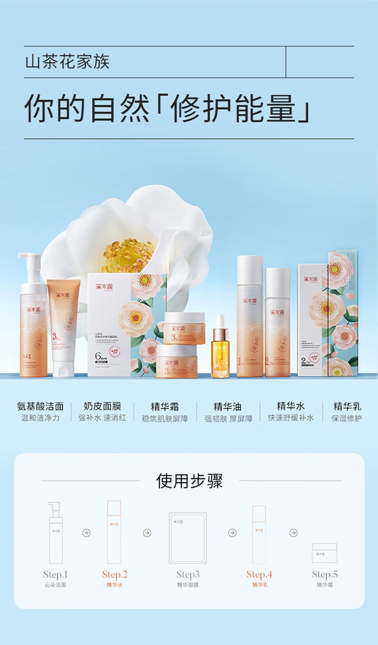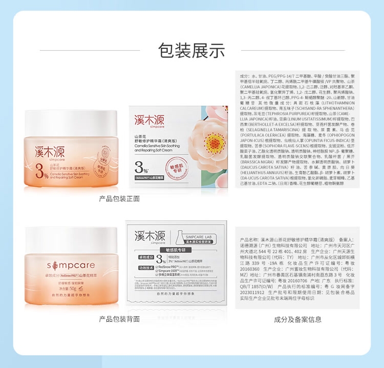 配置清单:溪木源山茶花舒敏修护精华霜(滋润版)30g 溪木源山茶花舒敏修护精华水 120ml 溪木源山茶花舒敏修护精华乳 100ml