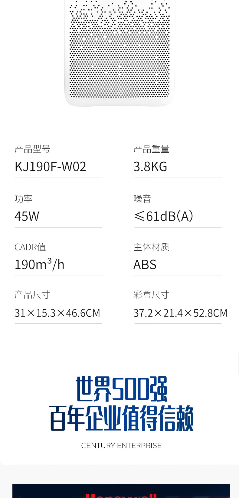 霍尼韦尔 家用办公台面空气净化器KJ190F-W02