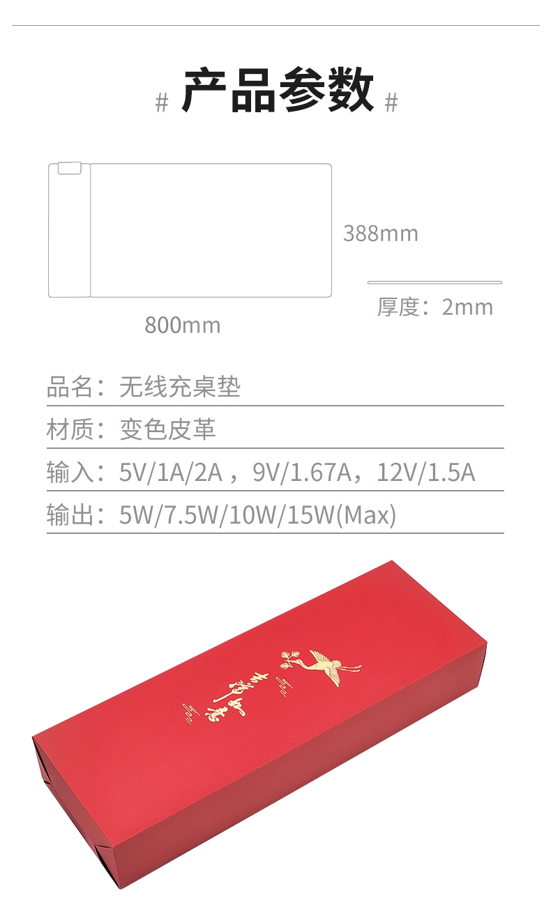 一垫三用、无线充电器+桌垫+鼠标垫;15W无线快充,桌面无乱线更整洁;皮纹细腻多功能,一垫多用更省空间