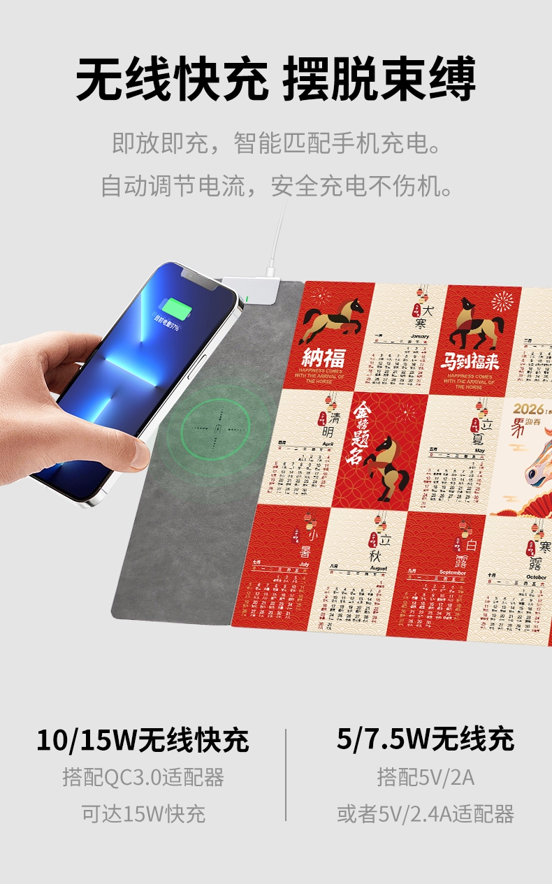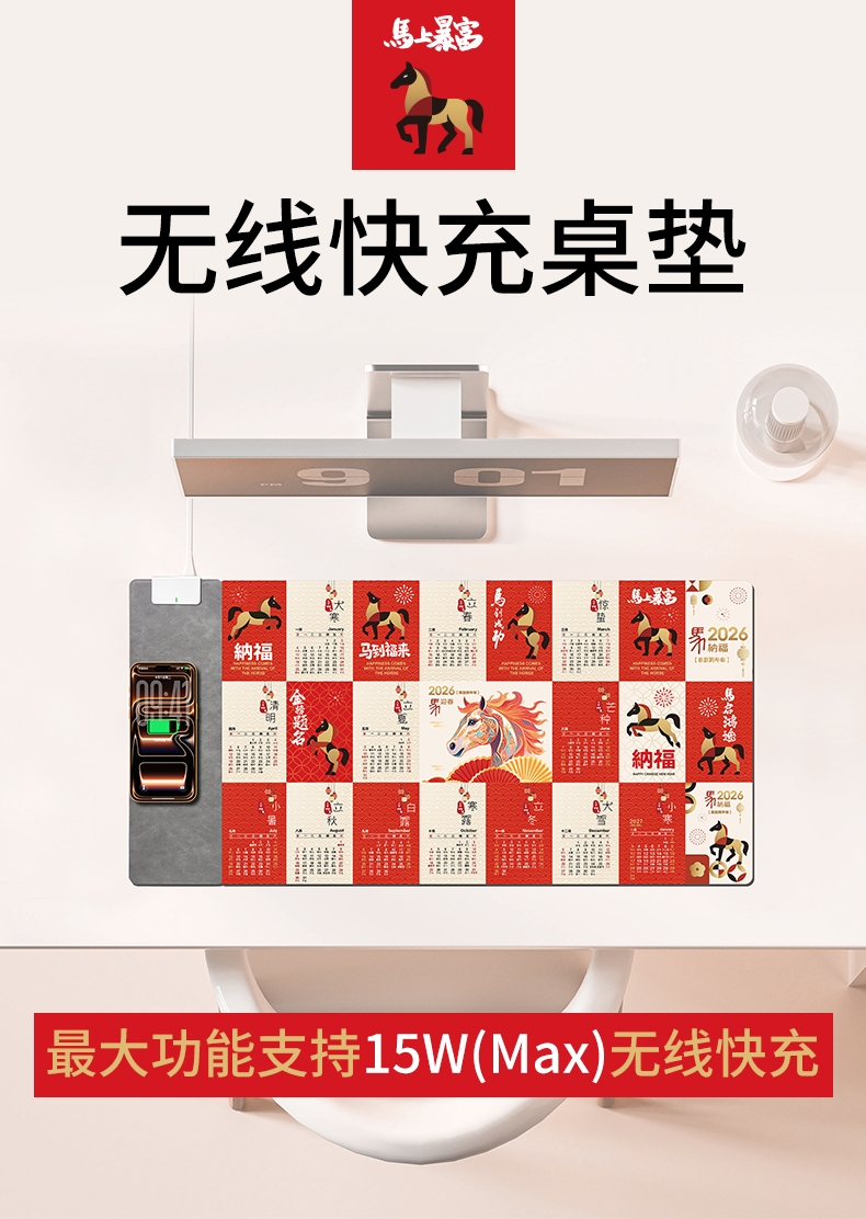 东方韵 马年商务办公无线充鼠标垫桌垫