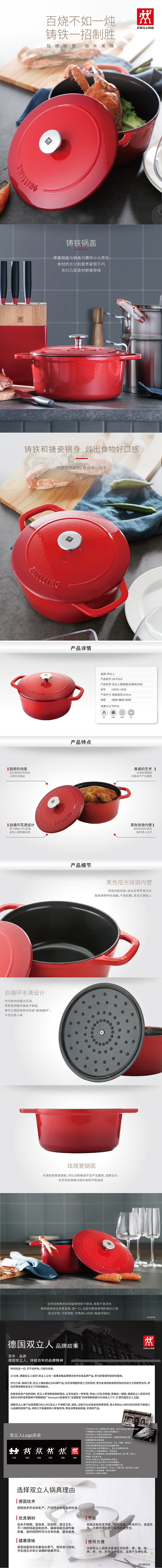 双立人 珐琅樱桃红铸铁锅20cmSA-P010