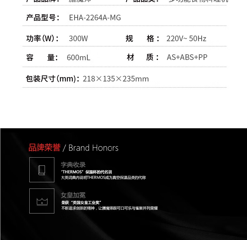 膳魔师 多功能食物料理机600mlEHA-2264A-MG