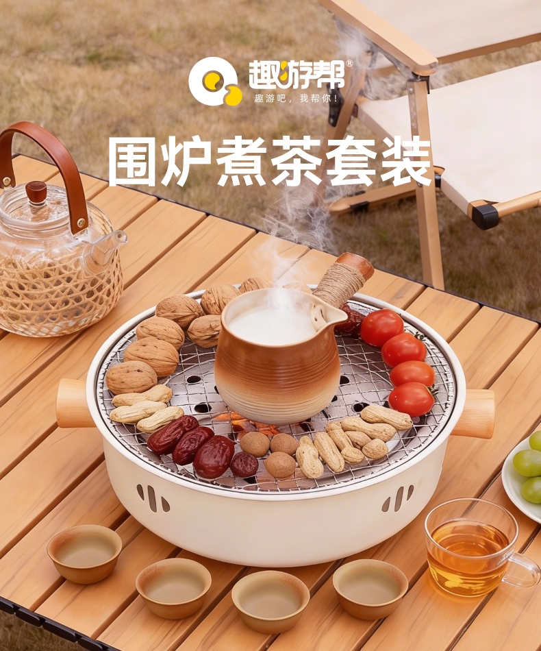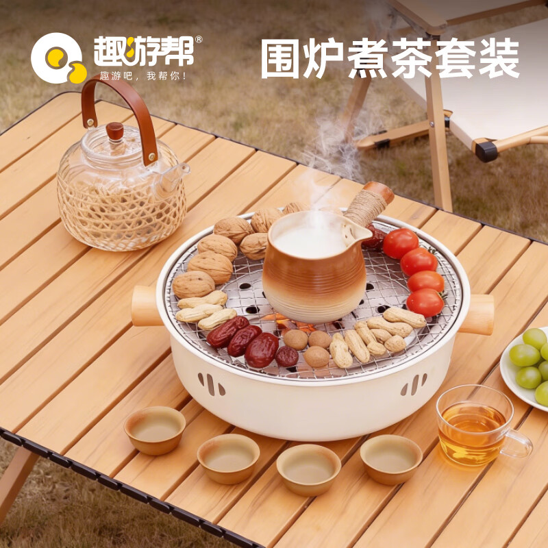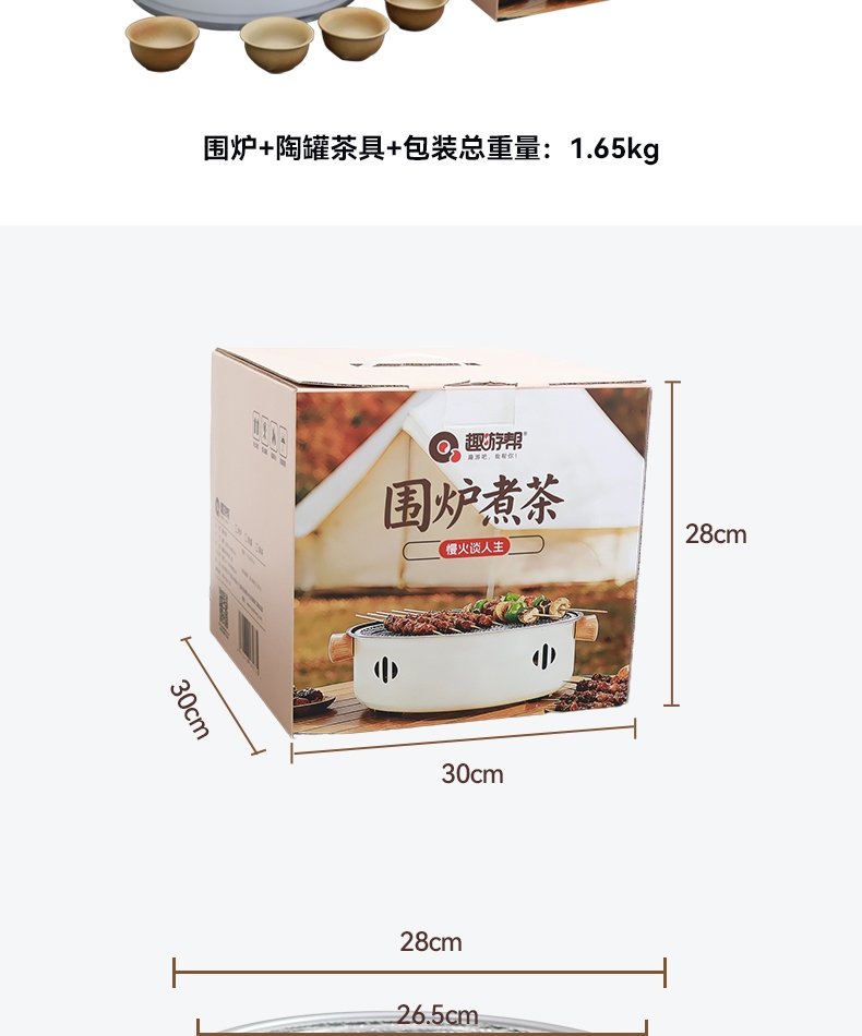 材质 围炉:碳钢 陶罐,杯子:陶制