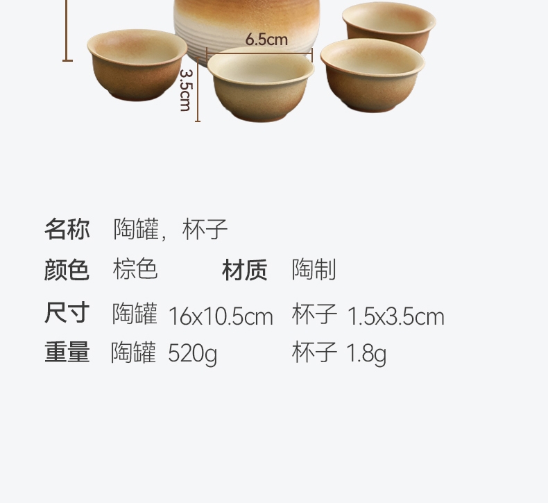 陶罐:直径16cm 高10.5cm 杯子:直径6.5cm 高3.5 cm
