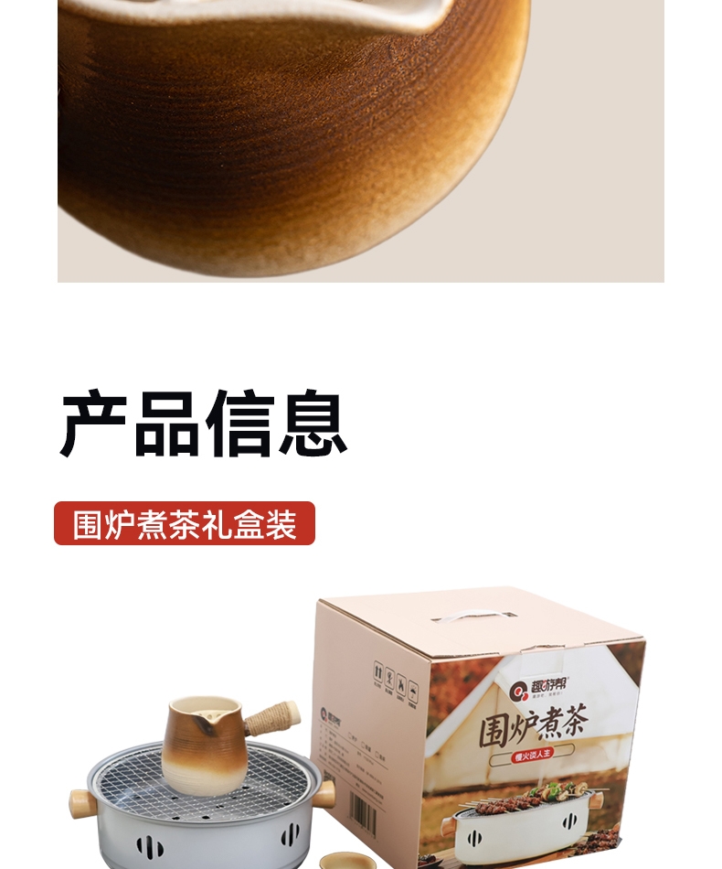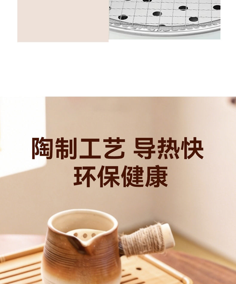 可分离设计安装简易 方便存取;一壶多用,煮茶,烤奶 ,温酒;陶壶选自原矿陶土高温烧制而成,导热快速均 环保健康