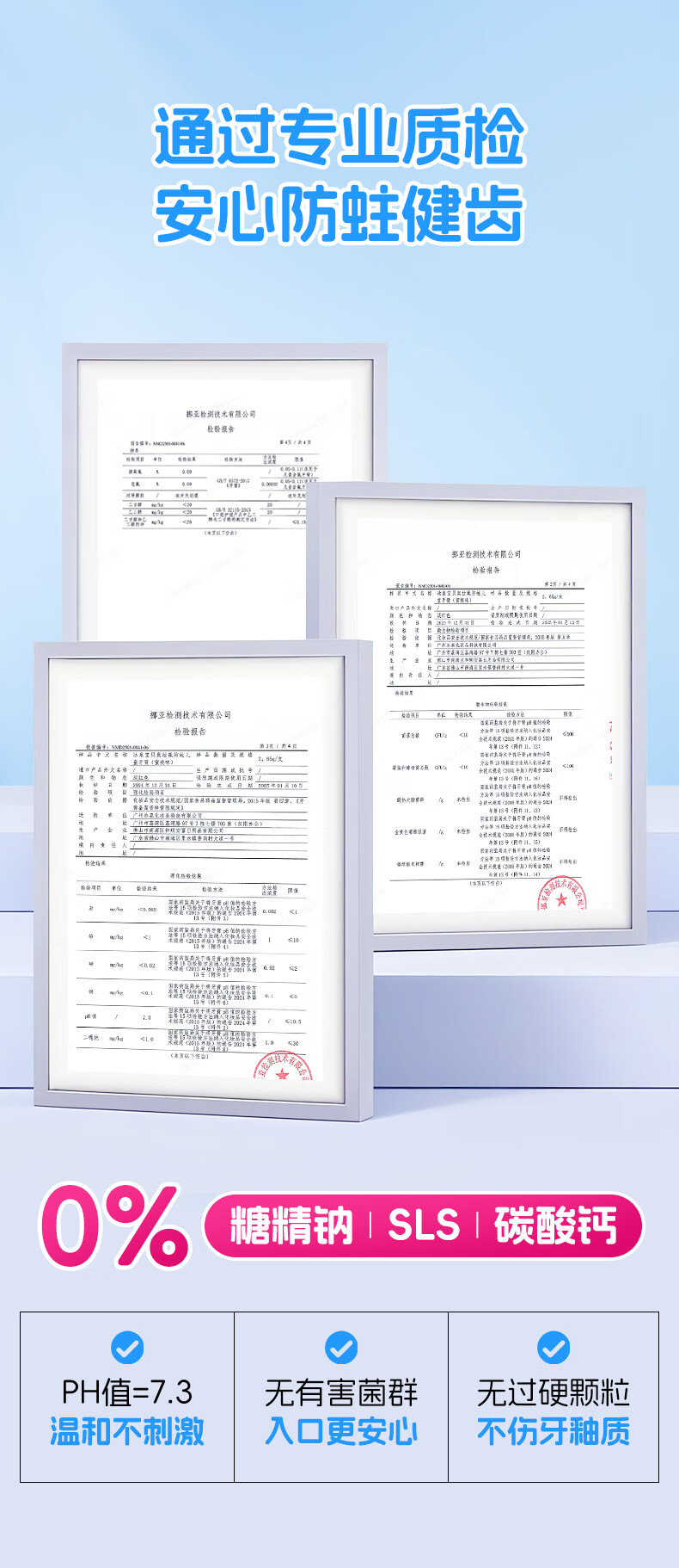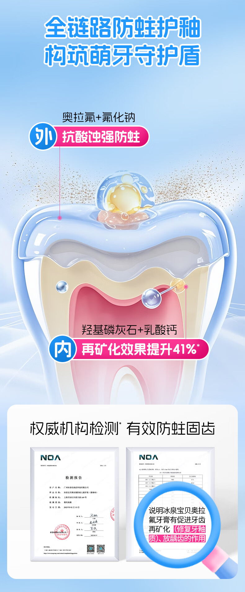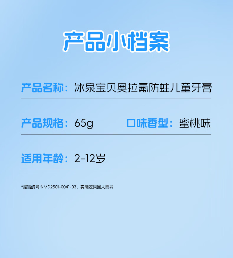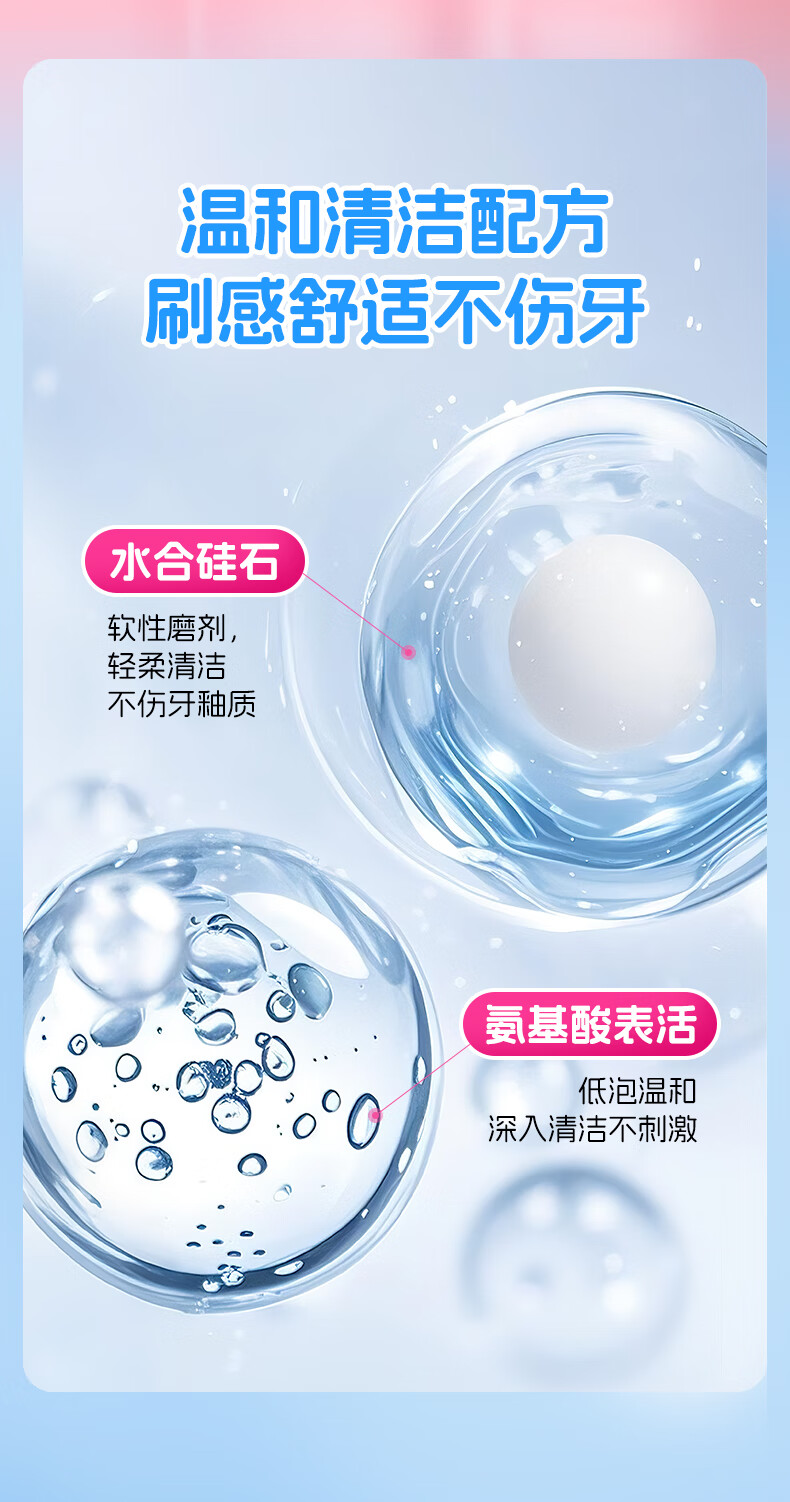 低泡温和深入清洁不刺激;蜜桃果香宝宝刷牙不用哄;专业质检,安心防蛀健齿