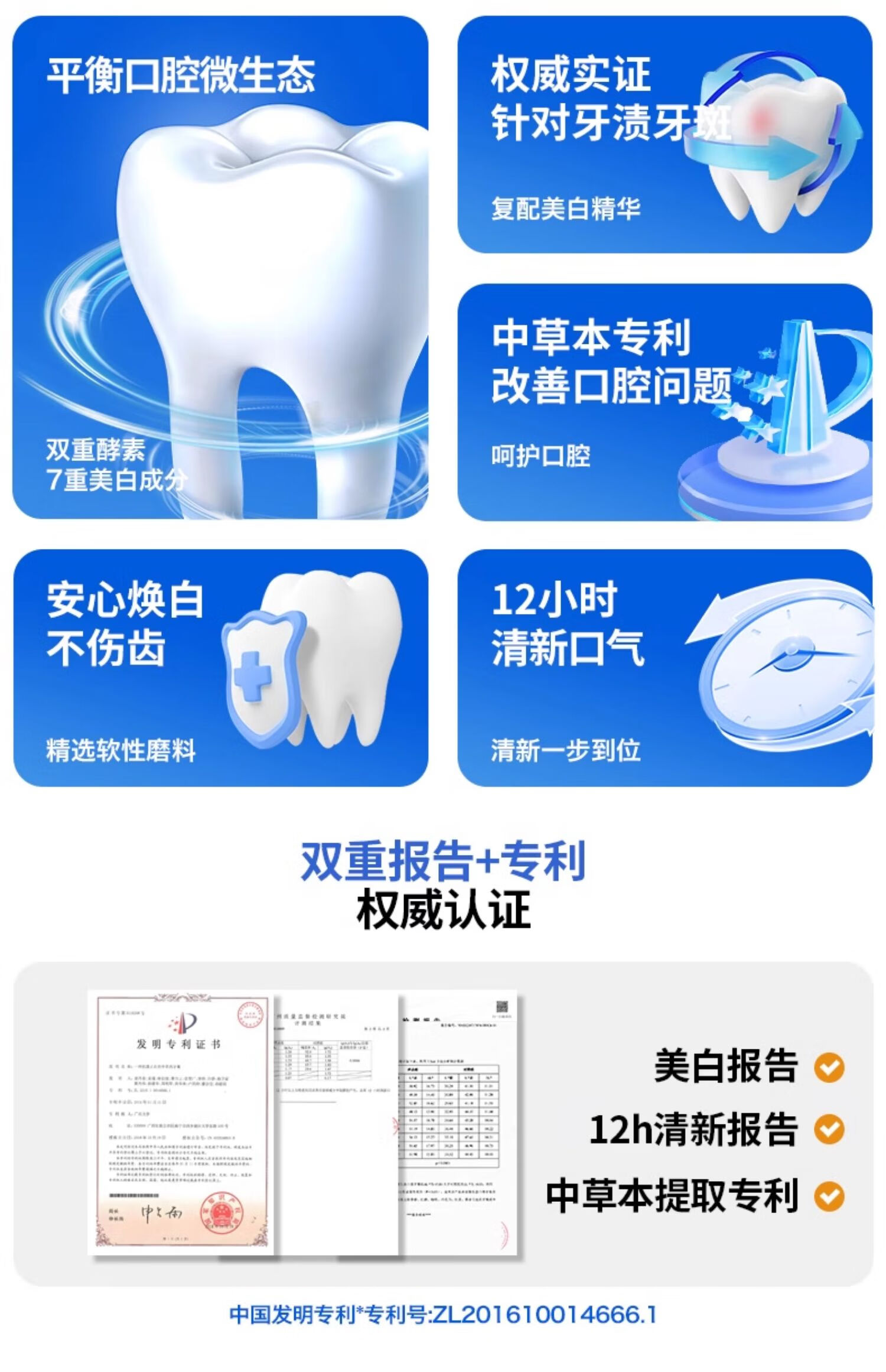 功能:口腔抑菌,去牙渍,去烟渍,清新口气