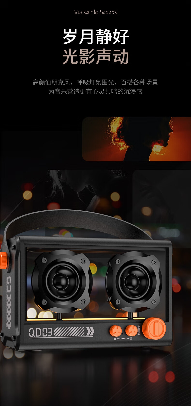 高透琉璃感,复古朋克风;震撼大喇叭,HIFi音效;复合大喇叭,10W双喇叭