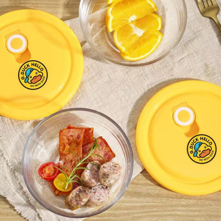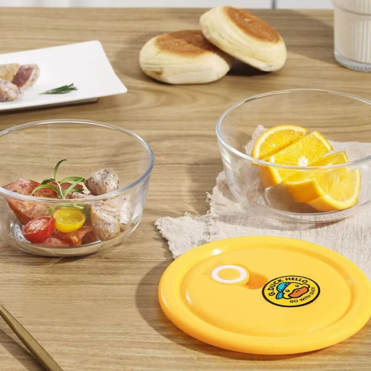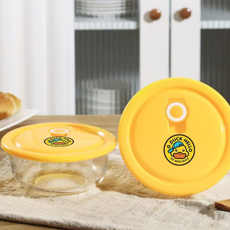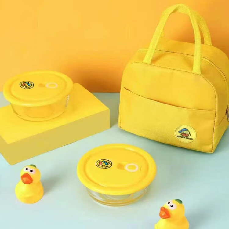 奥丽思 联名小黄鸭玻璃饭盒保鲜盒两件套Y1101-22B