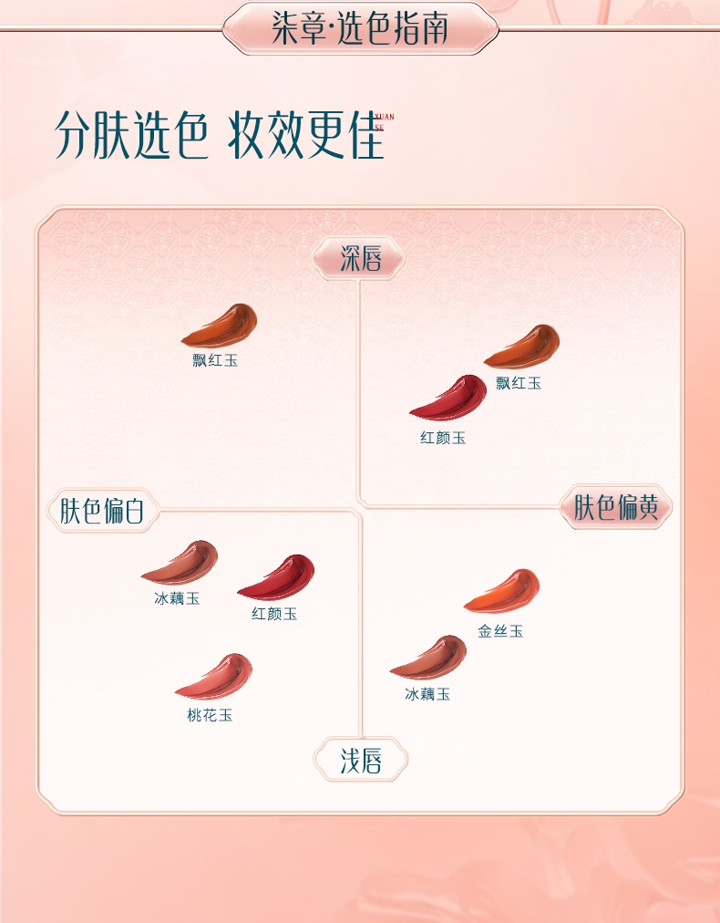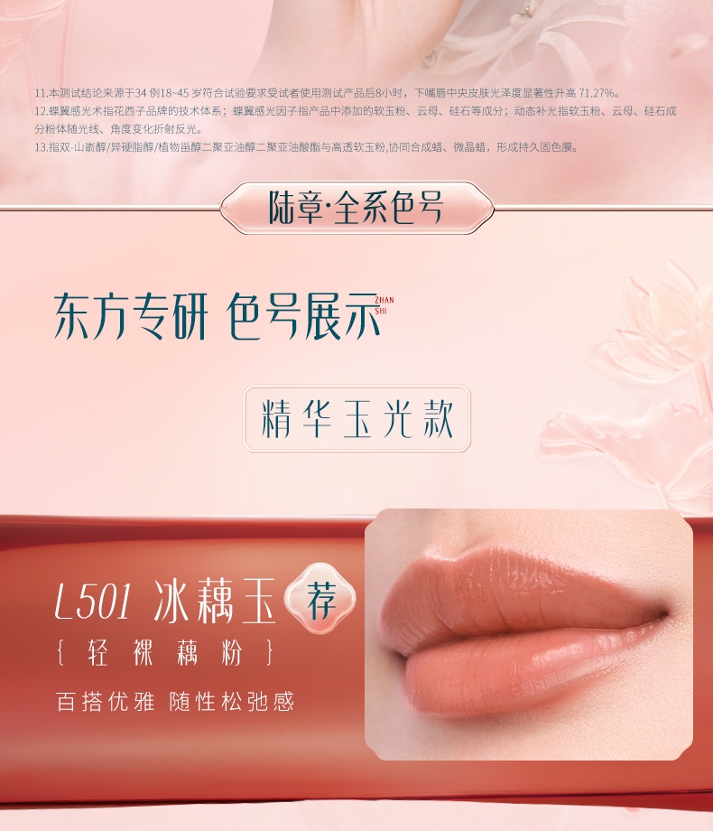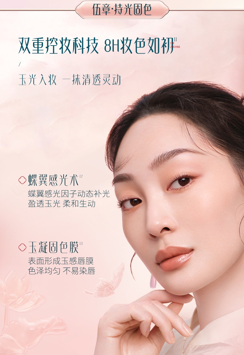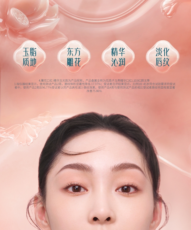 膏体采用微雕工艺,雕刻着莲花、蝶翼等立体图案;色号呈现细闪粉调,薄涂自然提气色;无论是白皮、黄皮还是黄黑皮,都能轻松驾驭,展现自然