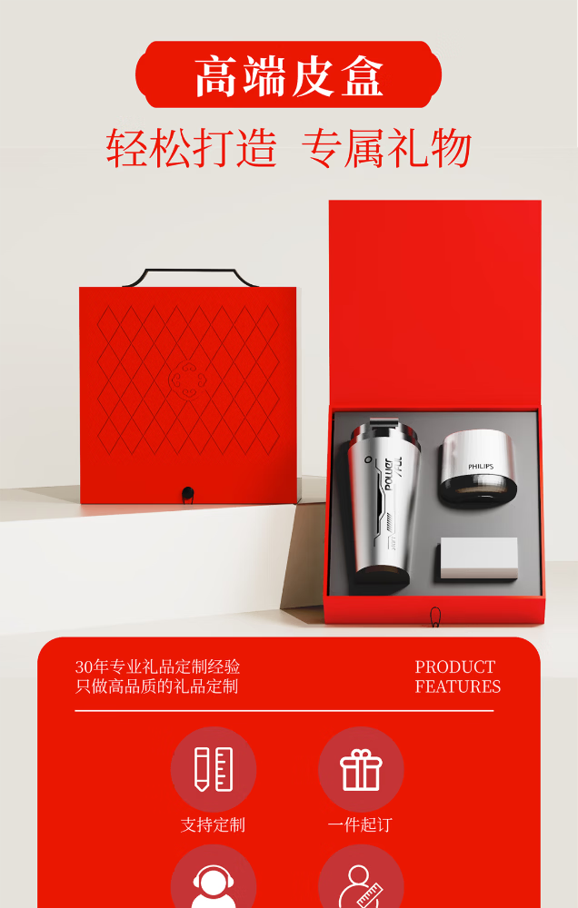 保温杯:冷暖皆守护,随身如知己;手提皮盒:方寸载品位,提挈显从容;蓝牙音响:声浪织氛围,随身小剧场