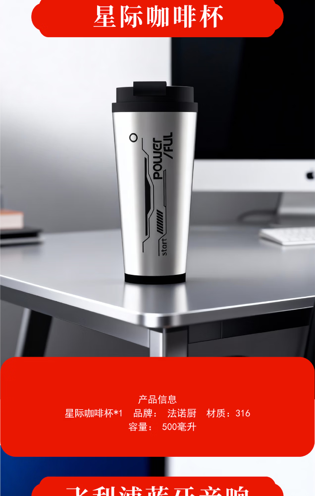 星际咖啡杯:品牌: 法诺厨 材质:316 容量: 500毫升