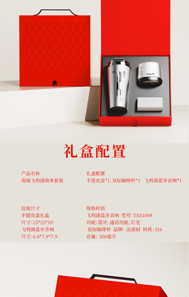 配置清单:手提皮盒*1、星际咖啡杯*1 飞利浦蓝牙音响*1