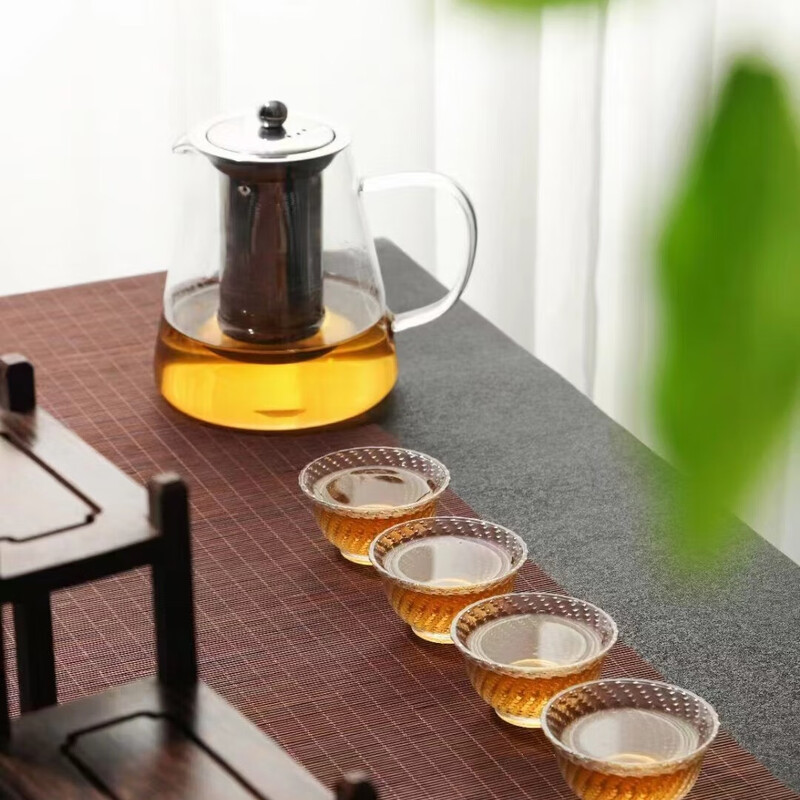材质:壶-高硼硅玻璃 杯-钠钙玻璃 壶盖、滤网-304不锈钢