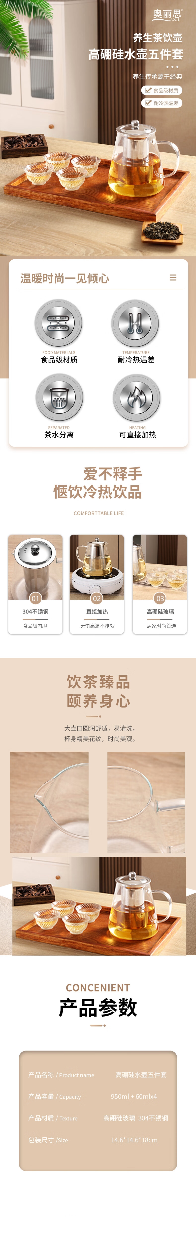 奥丽思 养生茶具玻璃水壶五件套Y8807-5