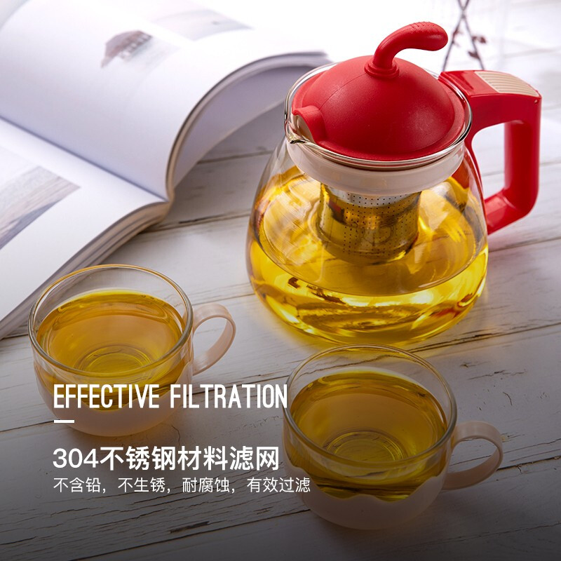 材质:壶身-玻璃(耐温0℃~100℃) 杯身-钠钙玻璃(耐温0℃~80℃) 盖子-聚丙烯+不锈钢(耐温-20℃~120℃)