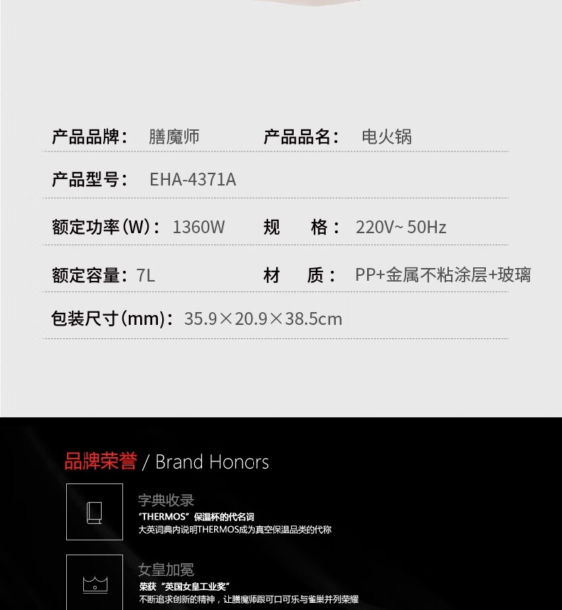膳魔师 家用大容量电火锅7LEHA-4371A
