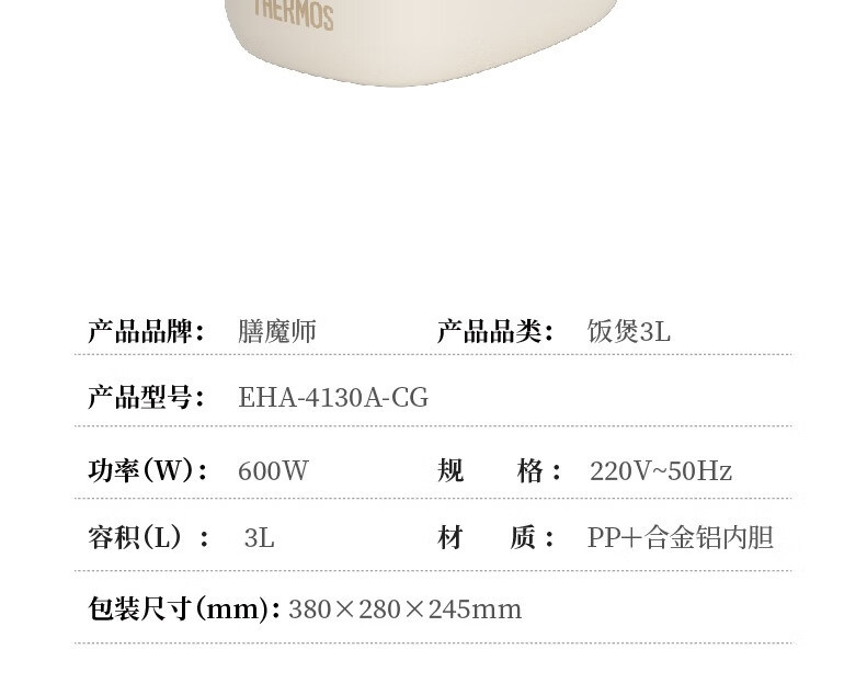 膳魔师 可预约多功能电饭煲3LEHA-4130A-CG