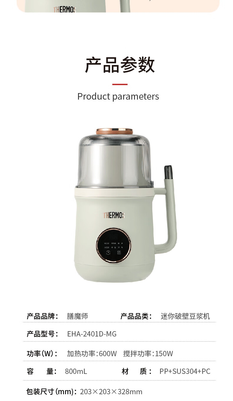 膳魔师 迷你破壁豆浆机800mlEHA-2401D-MG