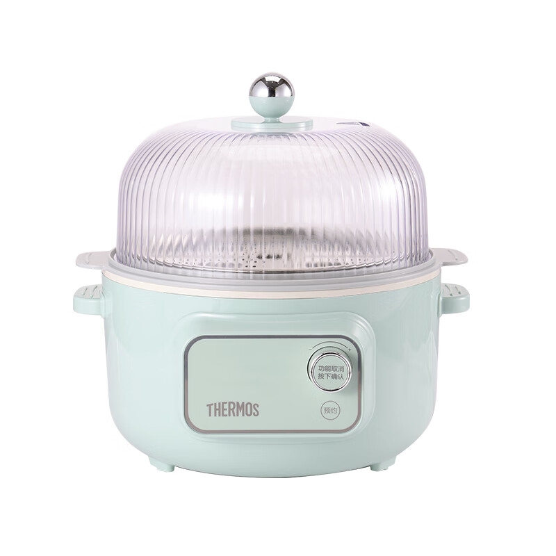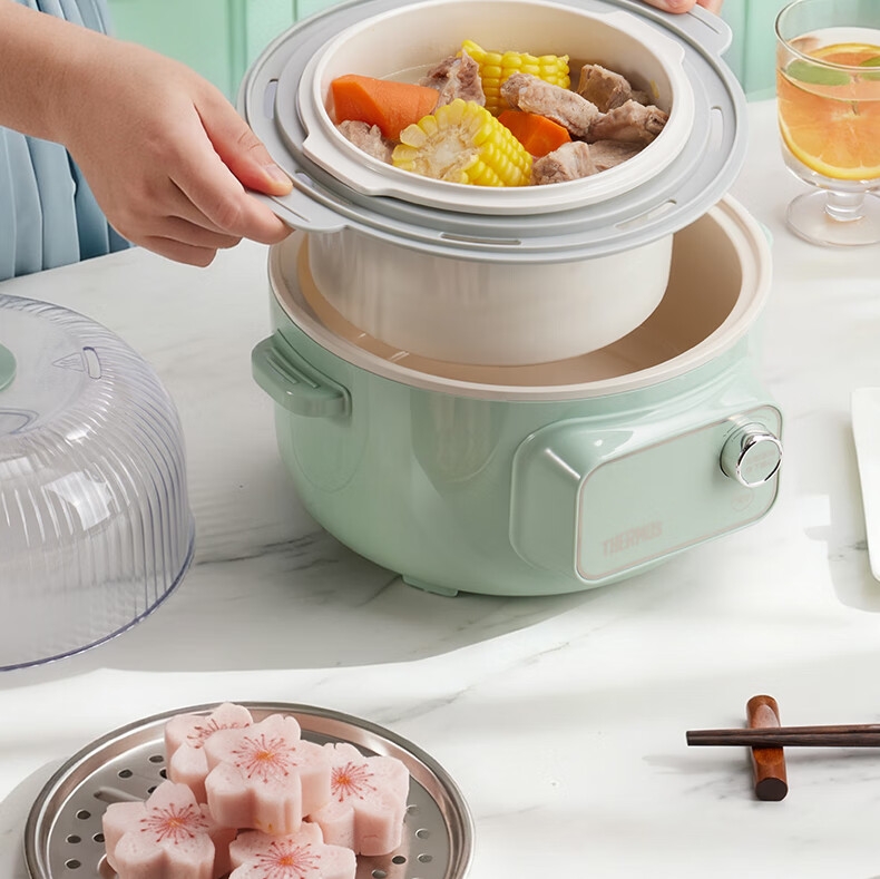 蒸、煮、涮、炖,一机多用途;内置304不锈钢蒸架,蒸舱空间可容纳8寸圆盘;微电脑控制,无极旋钮操控,可预约,免看管;配置PP提环,取放蒸架和炖盅更防烫