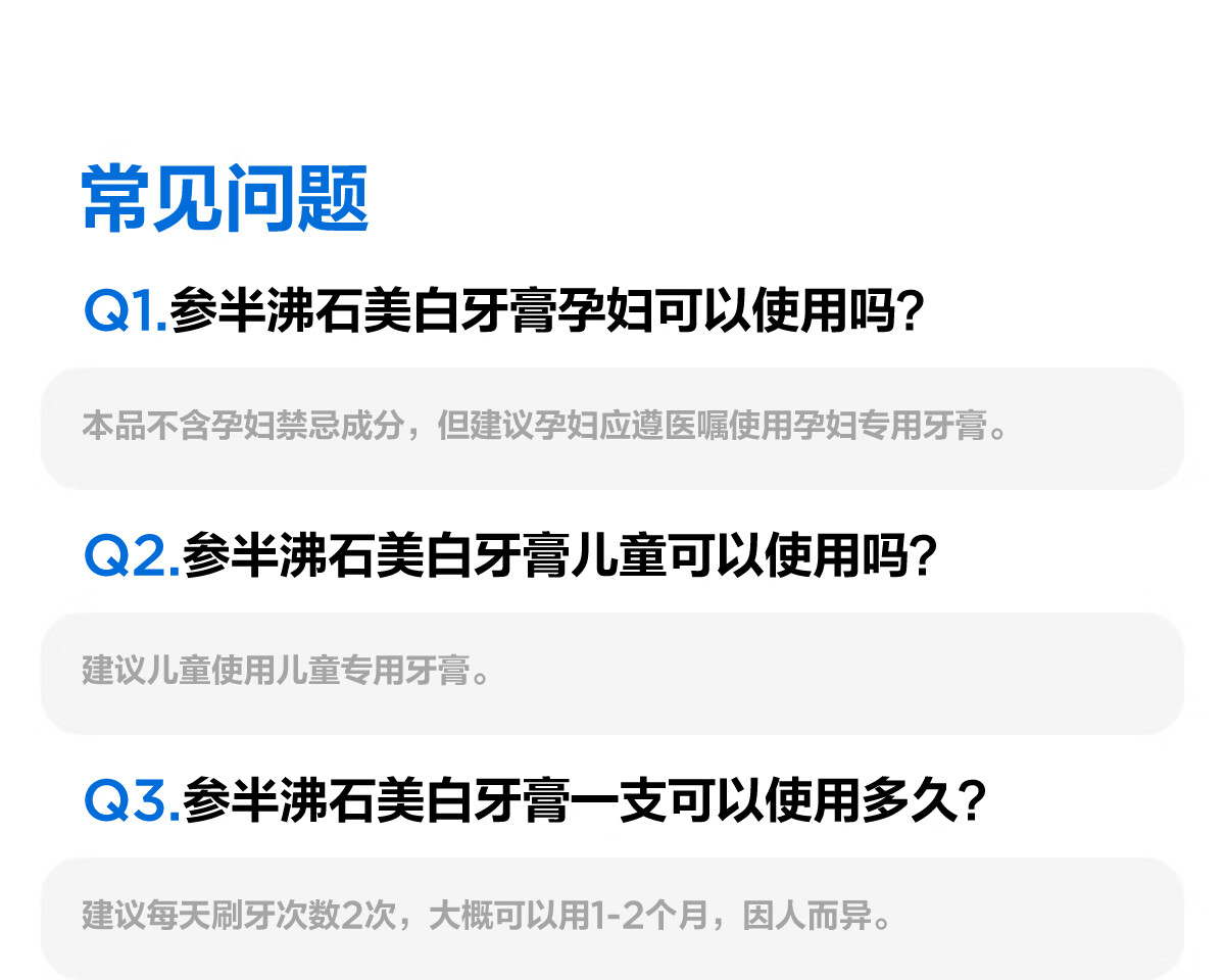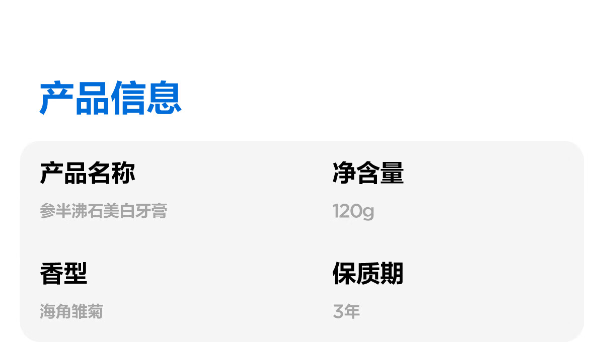 功能:清新口气,去牙渍,牙周护理,清洁,抗敏感