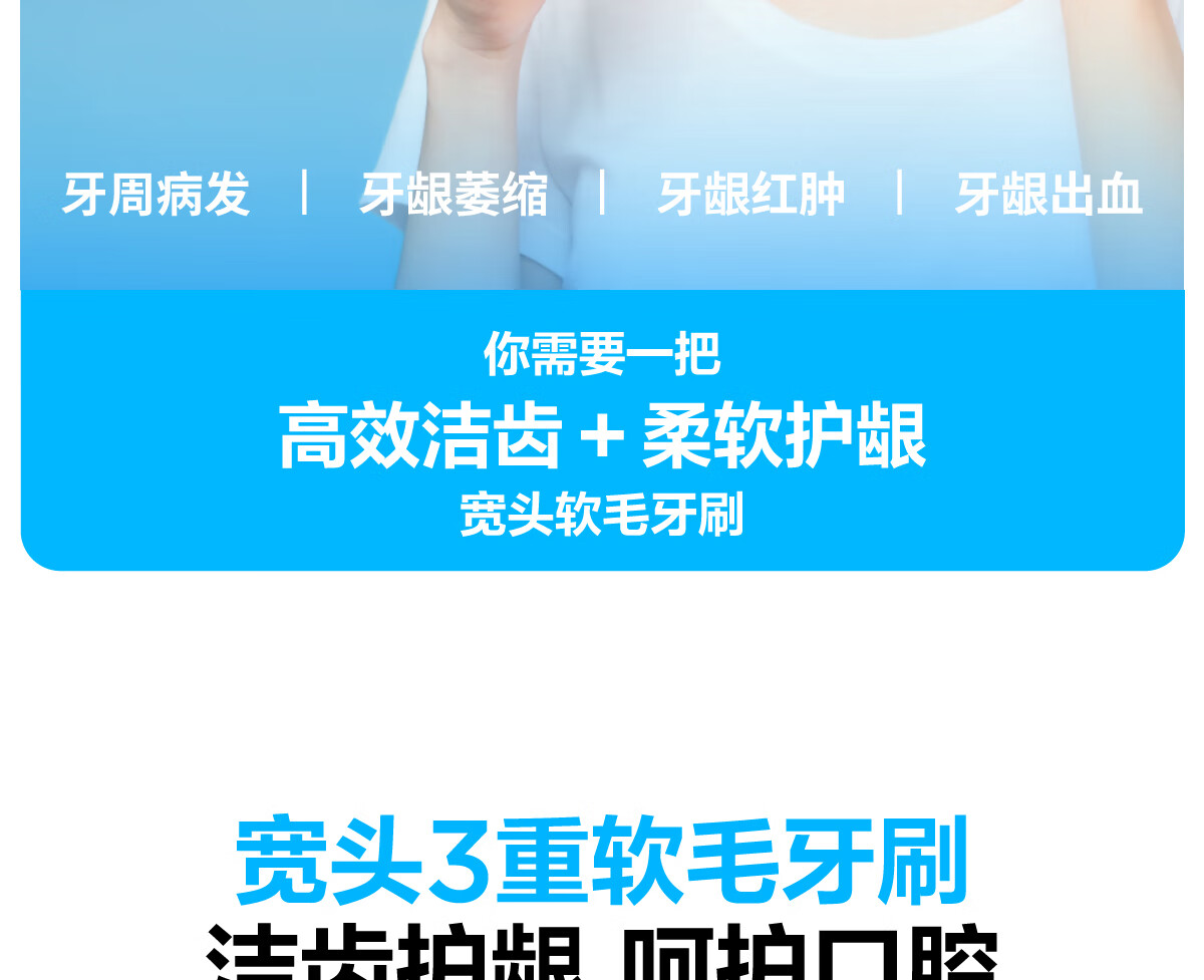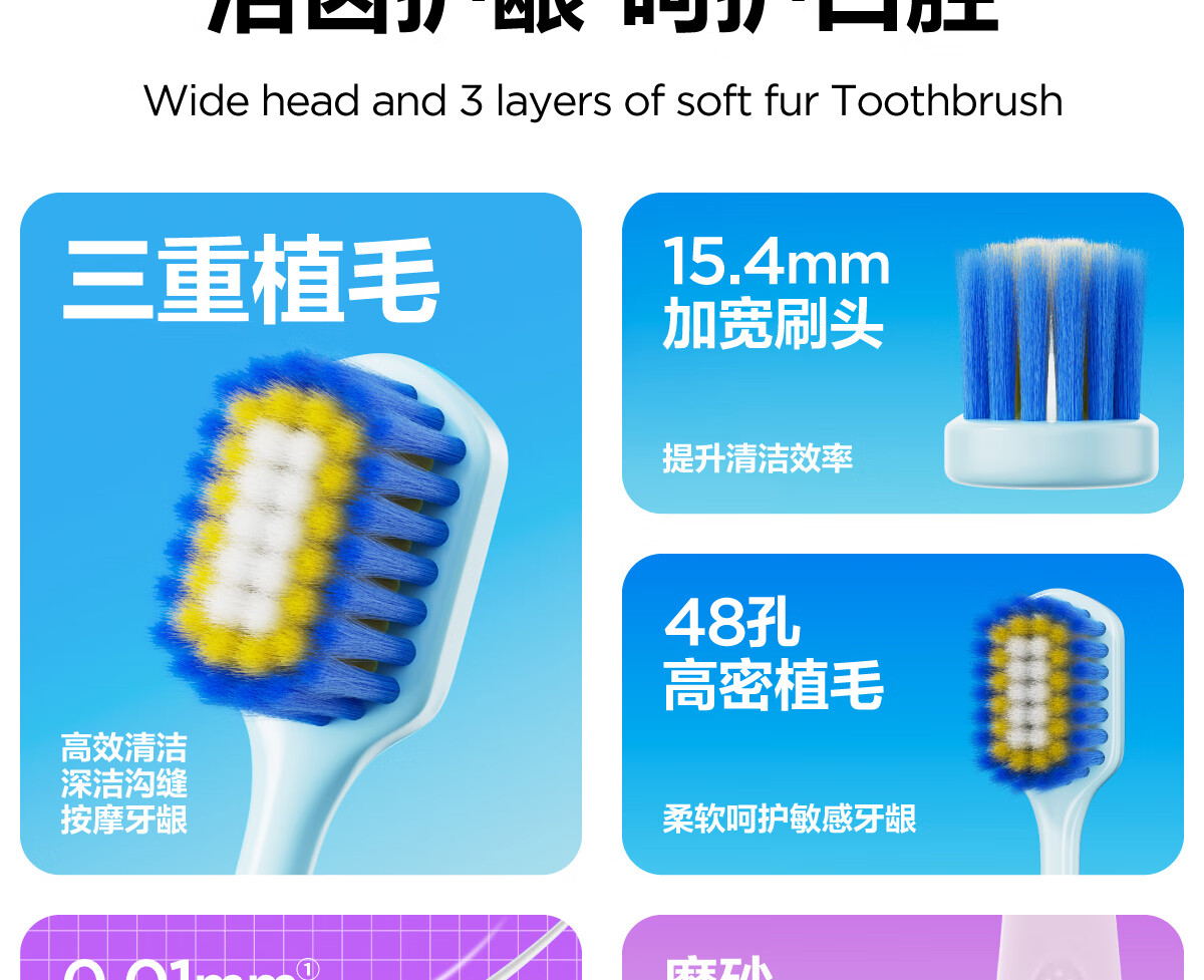 48孔三重植毛;宽头牙刷;护龈成人家庭情侣用