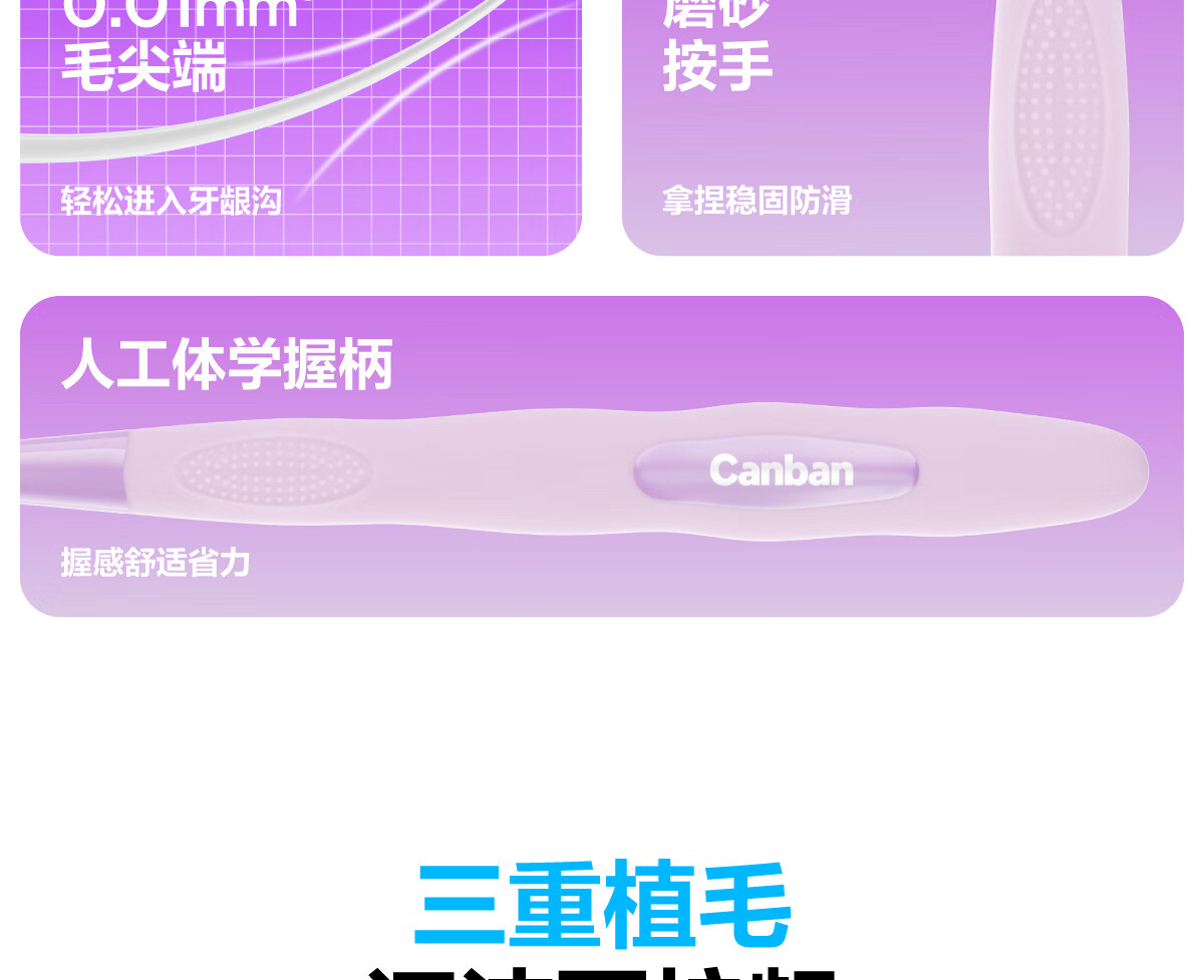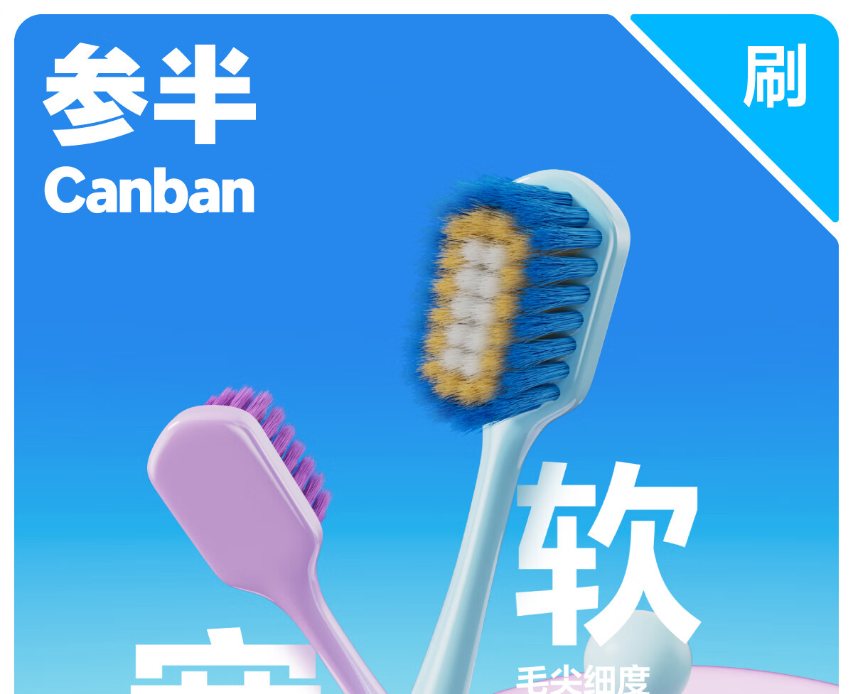 参半 宽头三重软毛牙刷单支装
