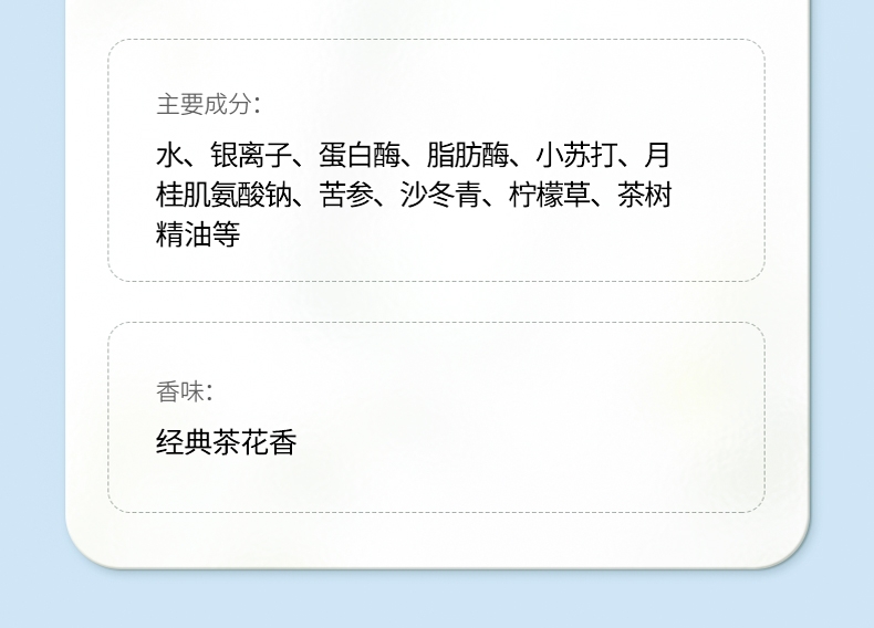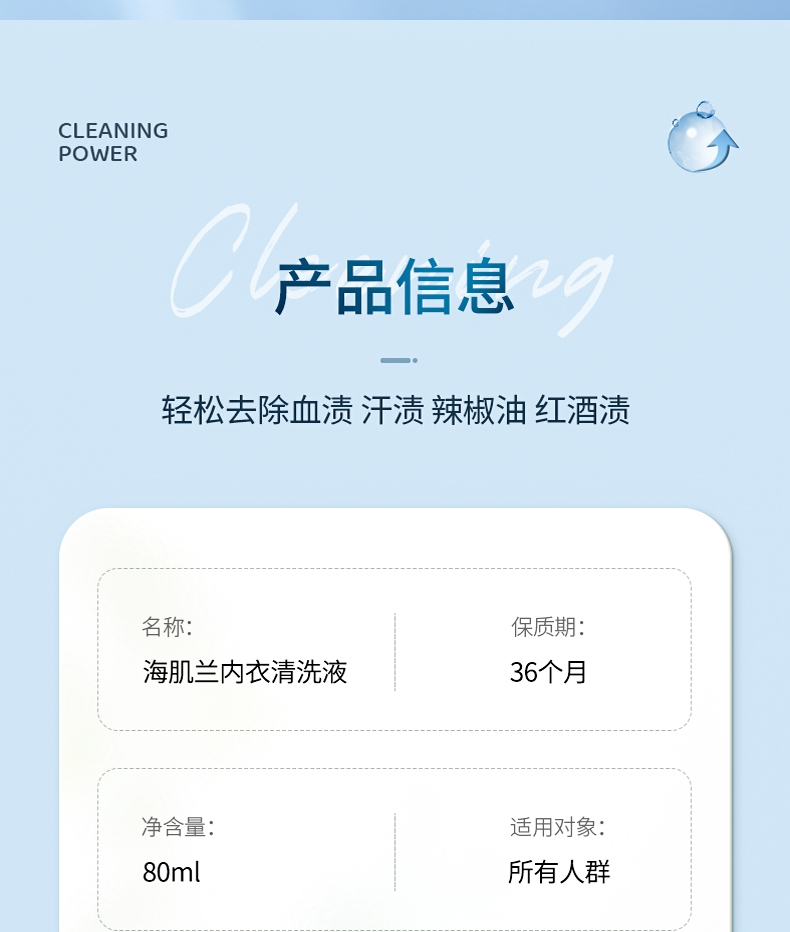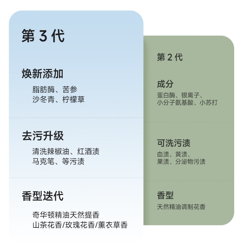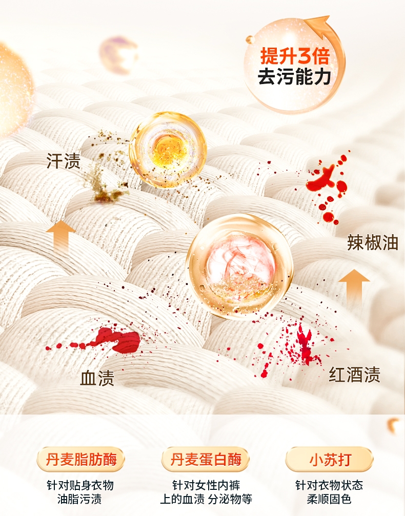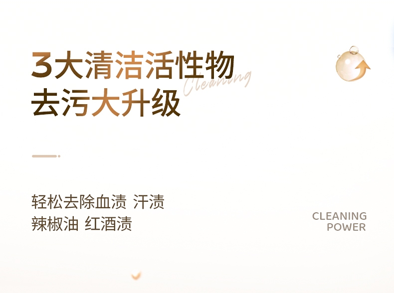 抑菌去污为健康加码;柔顺护衣,还原衣物本色;快速溶解衣物上的血渍和污渍