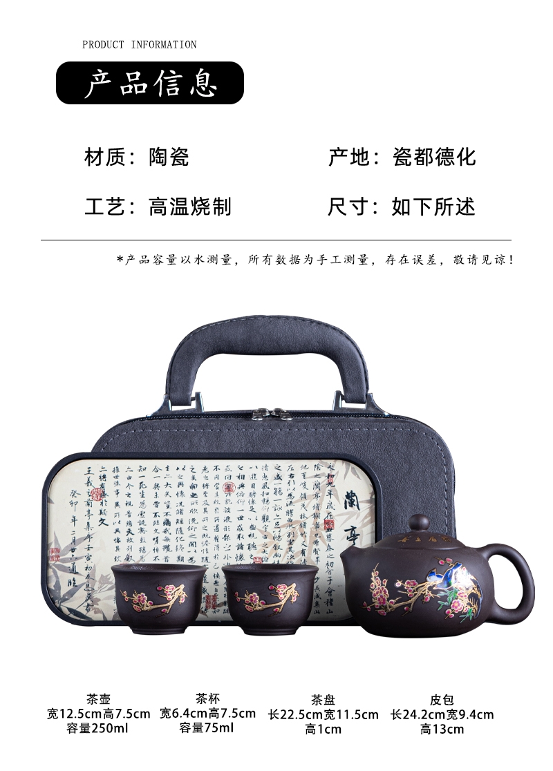 配置清单:西施壶+茶杯*2+干泡盘+皮包