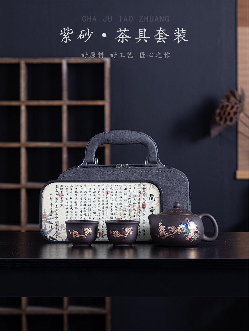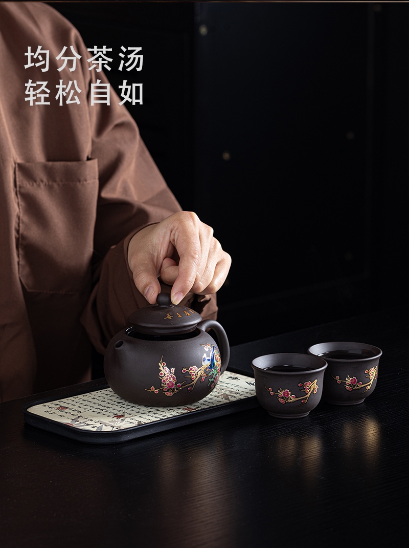 樱絮 变色紫砂凤鸣壶旅行茶具套装