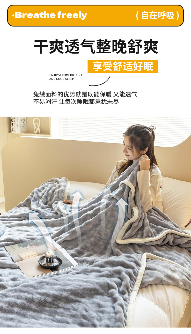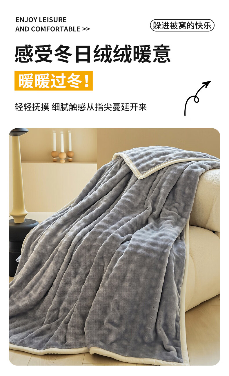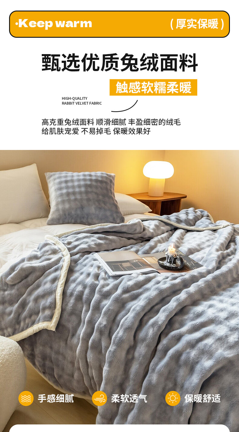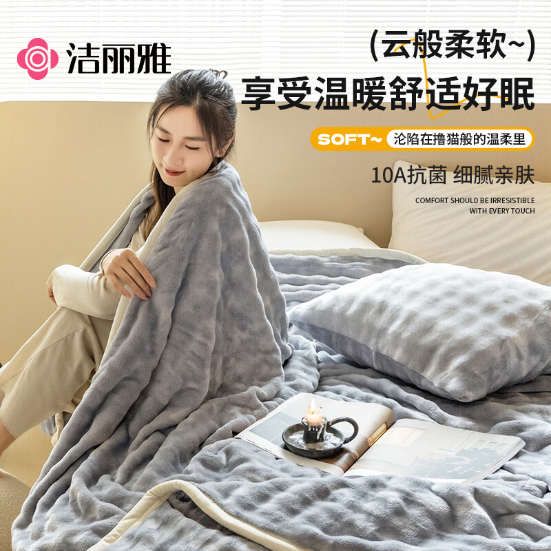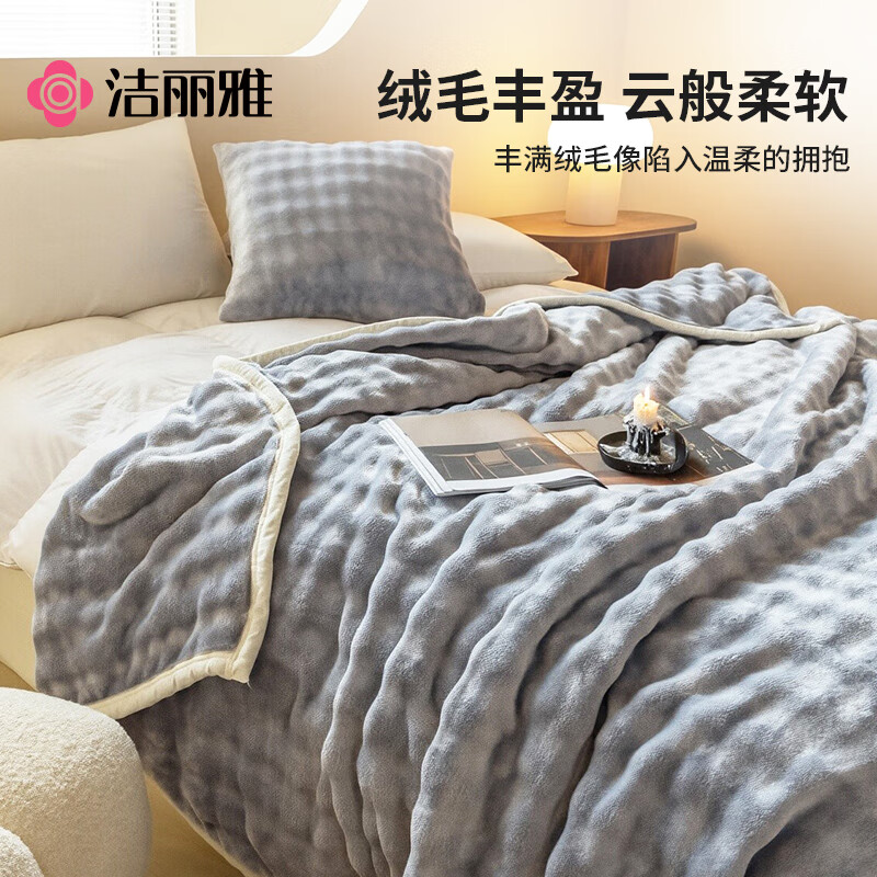 洁丽雅 10A抗菌兔毛绒毛毯灰1.5米