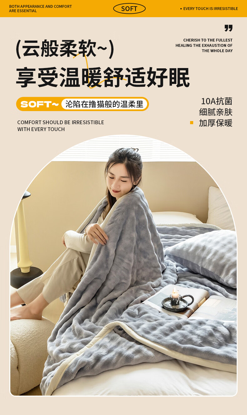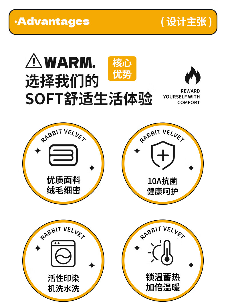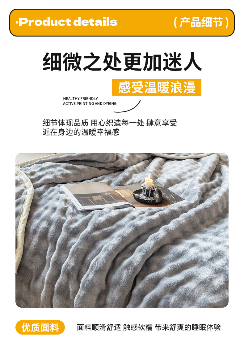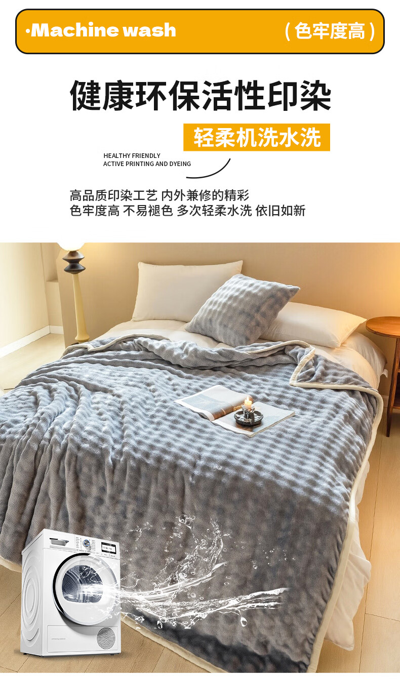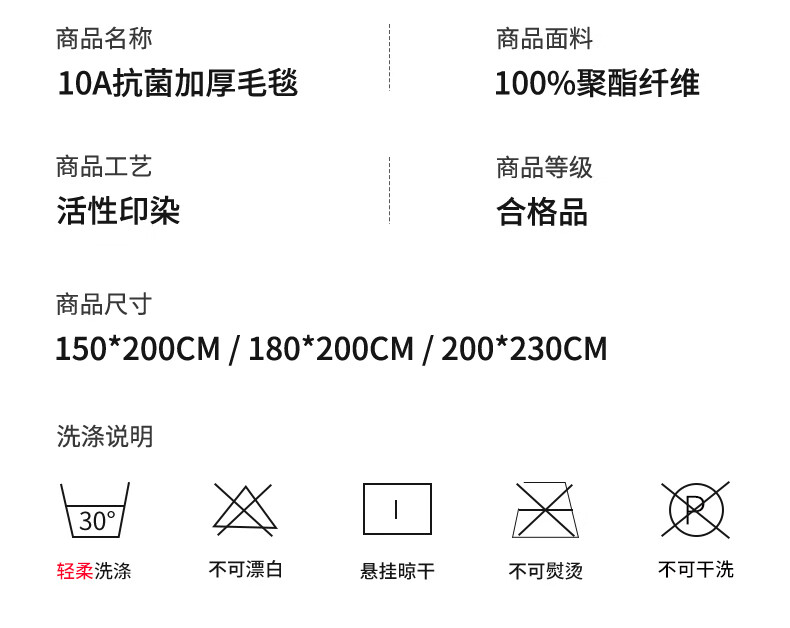 优质面料 绒毛细密;10A抗菌健康呵护;活性印染 可机洗手洗