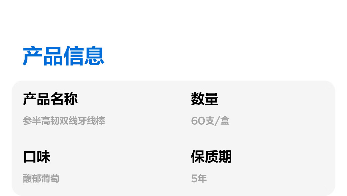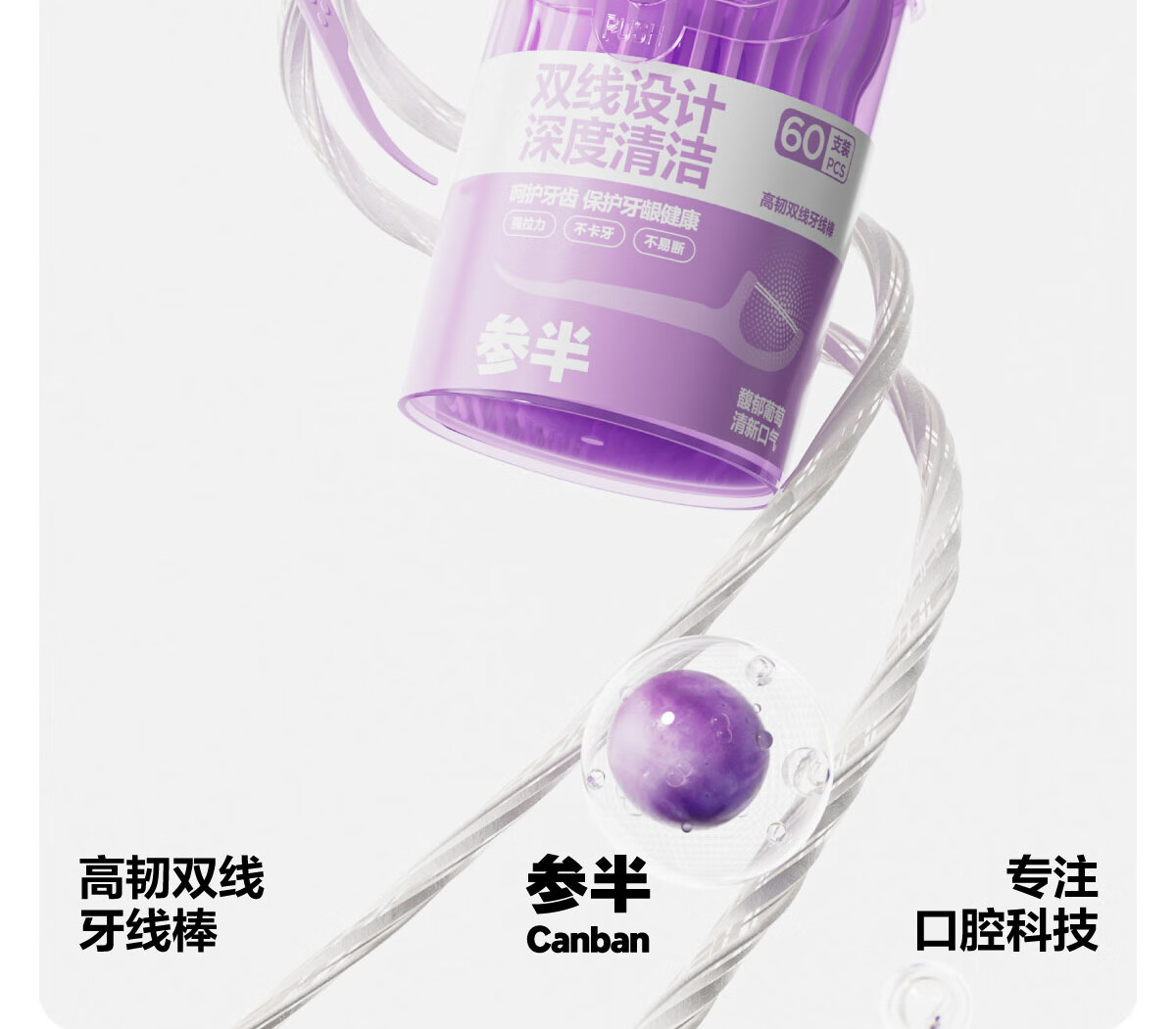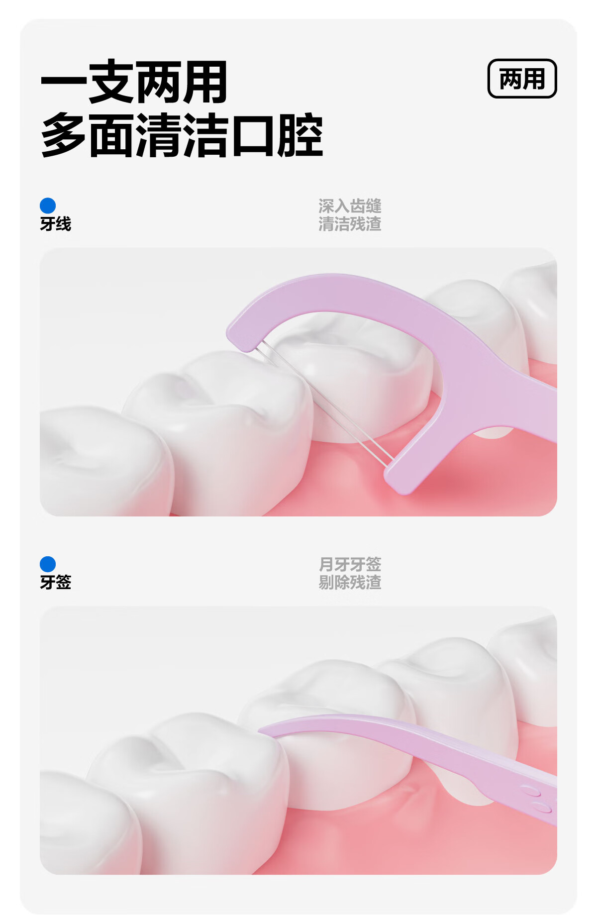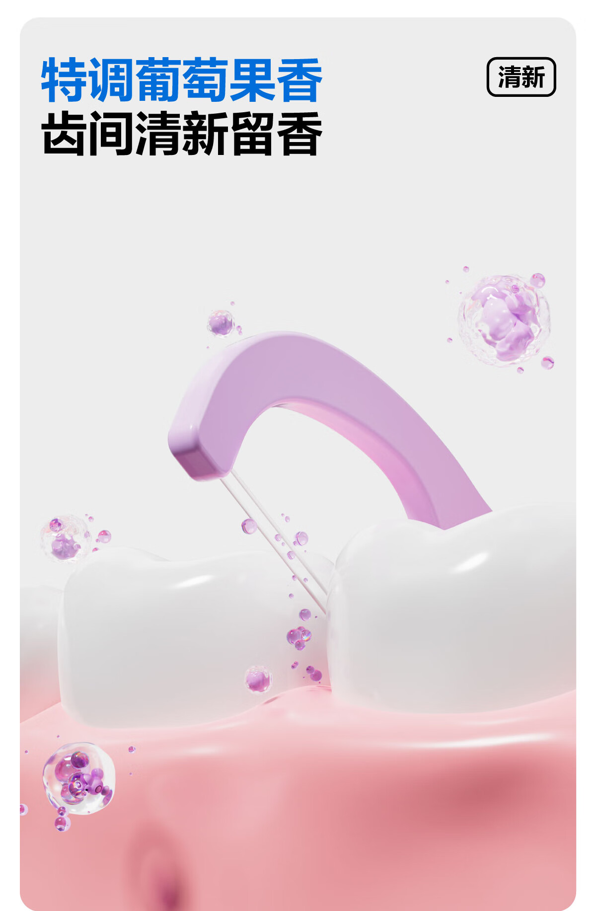 高韧双线牙线棒;高效清洁葡萄因子;齿间留香牙线
