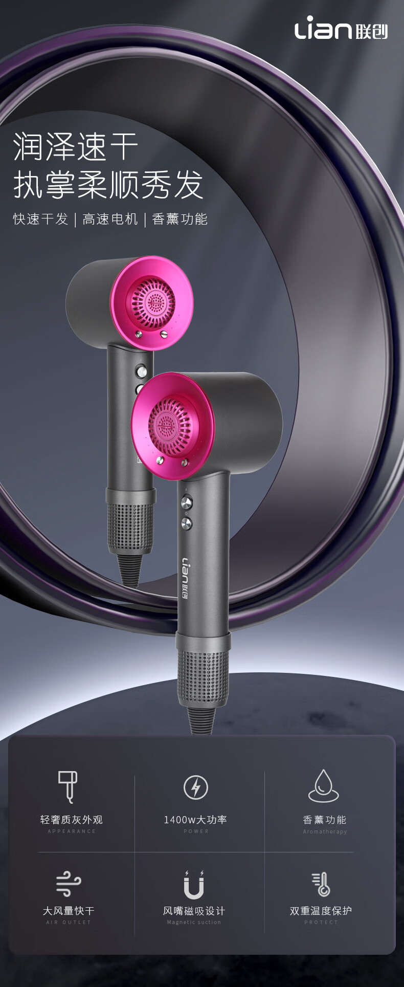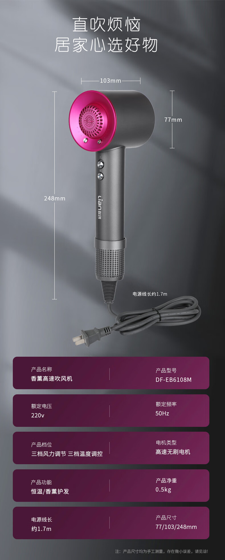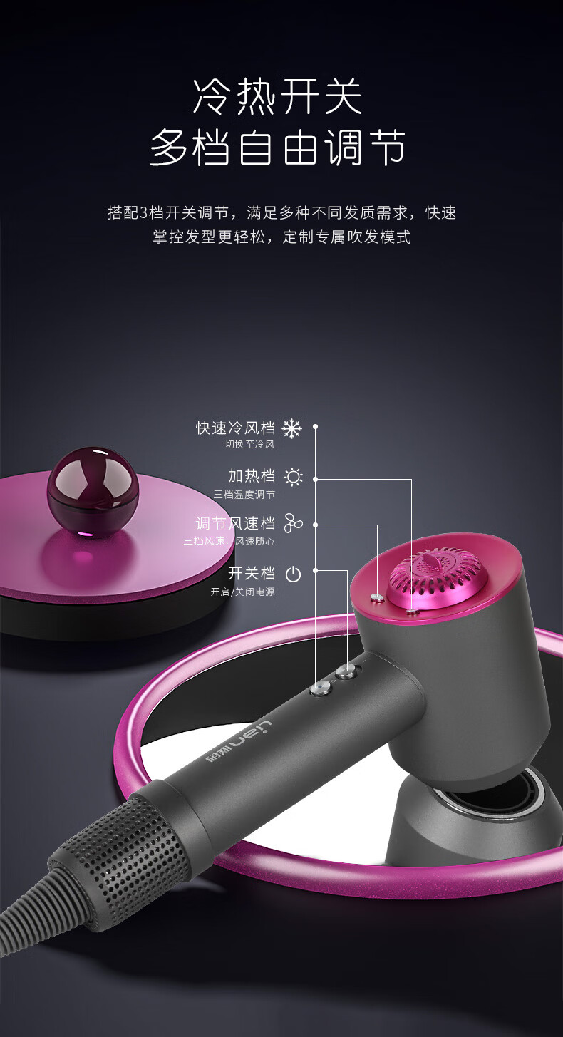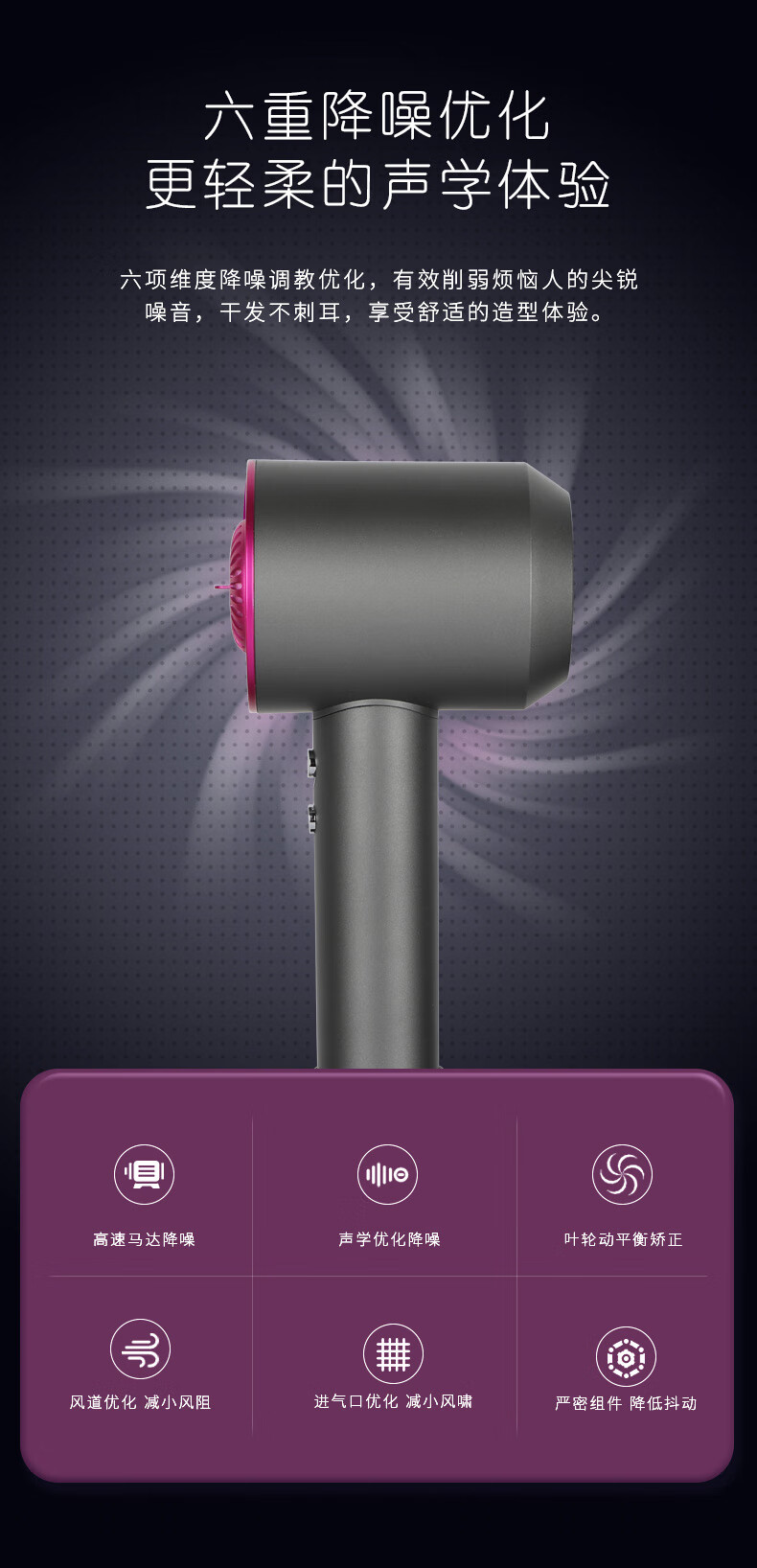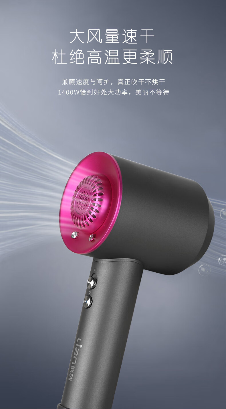 多种吹风模式选择;内置智能温控模块,实时调整风温防止过热损伤头发;风中自带香气,秀发呈现空气感、柔顺与迷人般香氛