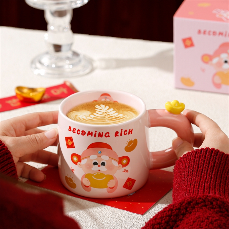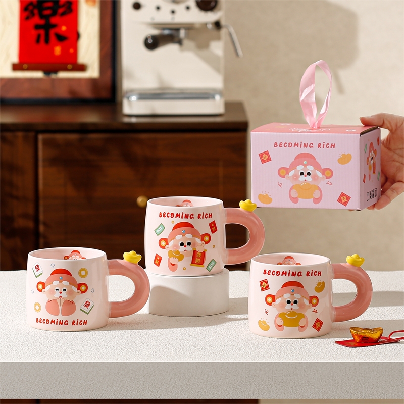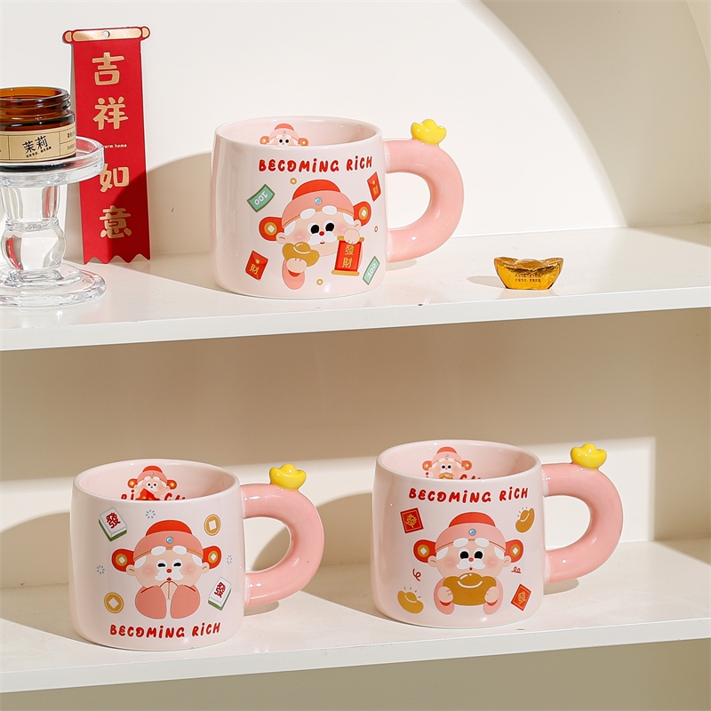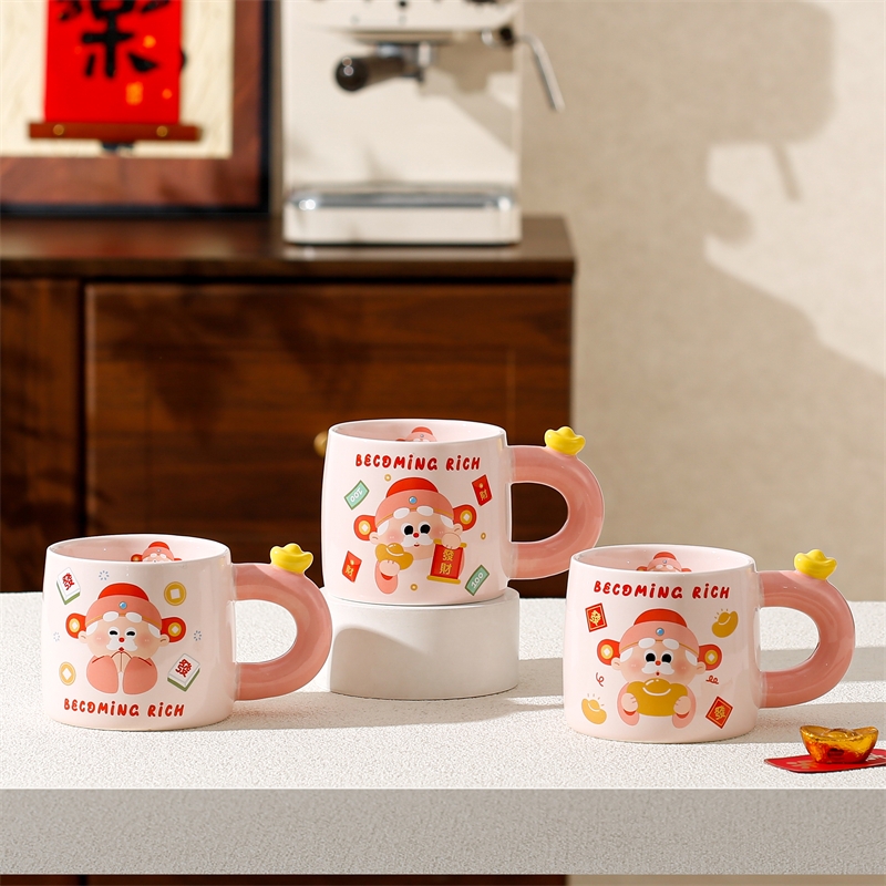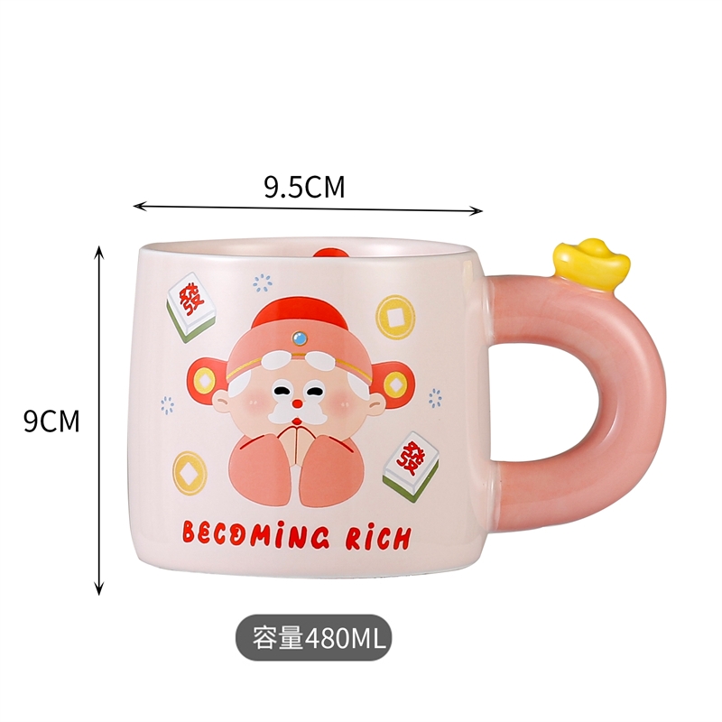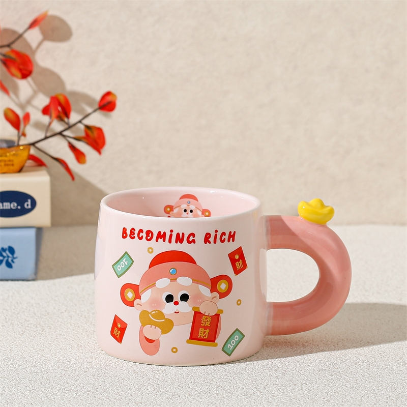 粉色系杯子;可爱卡通财神爷形象;单杯,配专属彩盒