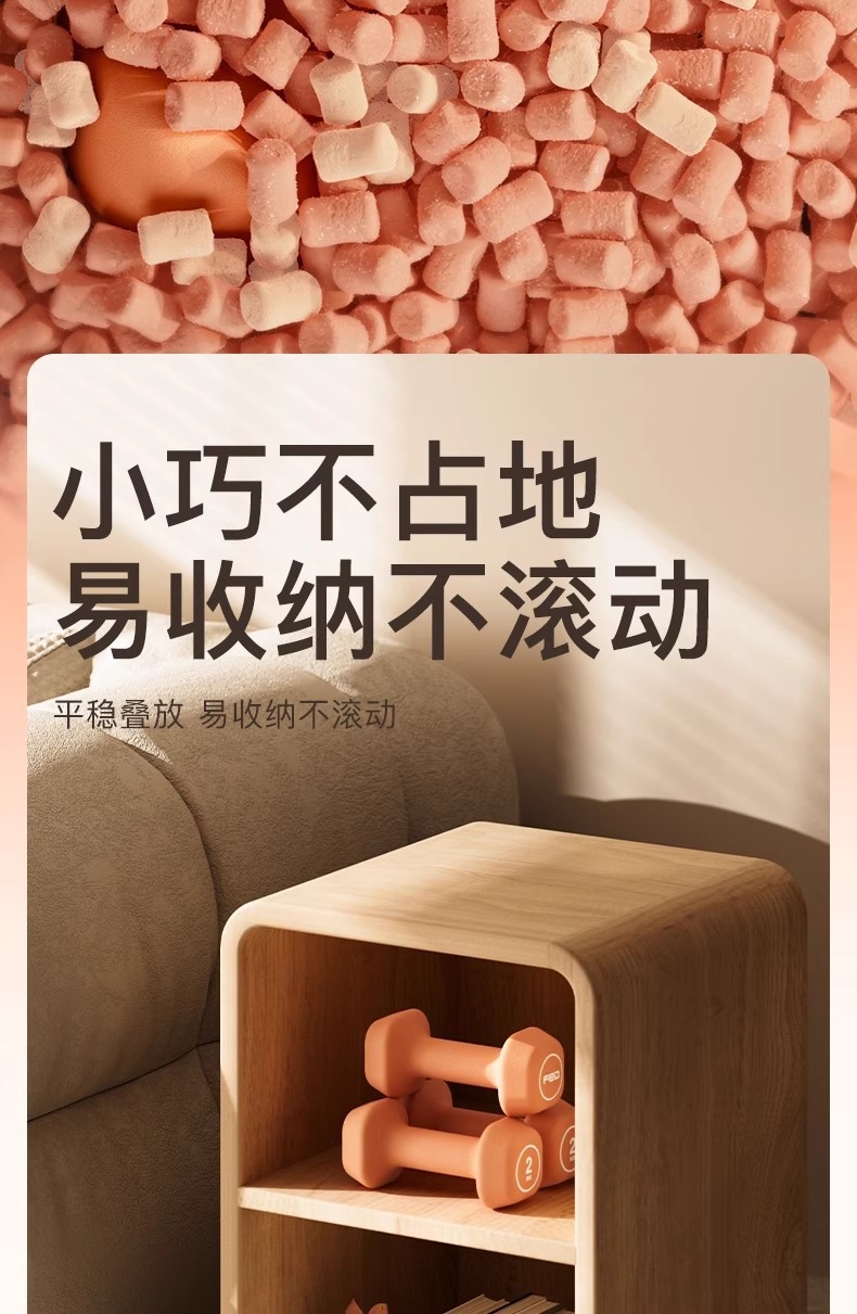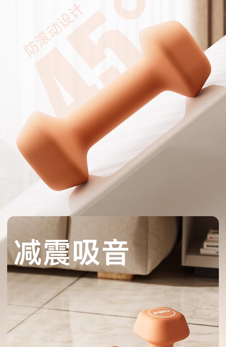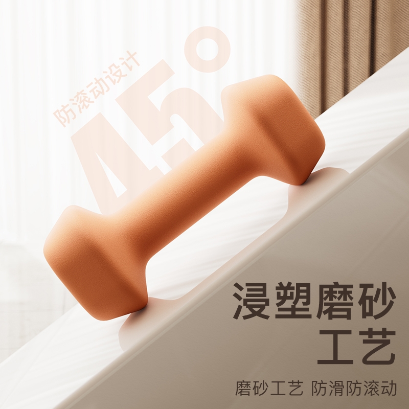实心铸铁,一体成型 ;升级磨砂浸塑工艺,柔软包裹,手感细腻 ;浸塑磨砂工艺,磨砂工艺,防滑、防滚动