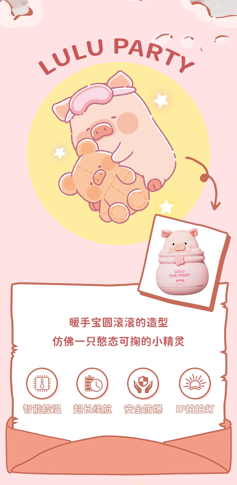 罐头猪LULU正版授权,经典萌趣化身;1小时定时熄灯,无需起夜关灯,默默陪伴安心睡眠;三档智能控温,温度恰到好处,暖手不烫手;内置多重安全保护,意外跌落也无忧,使用安心更可靠;一拍调光,轻拍切换四档亮度,光线柔和不刺眼