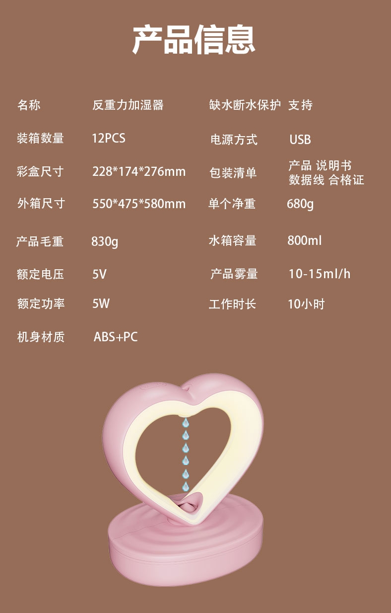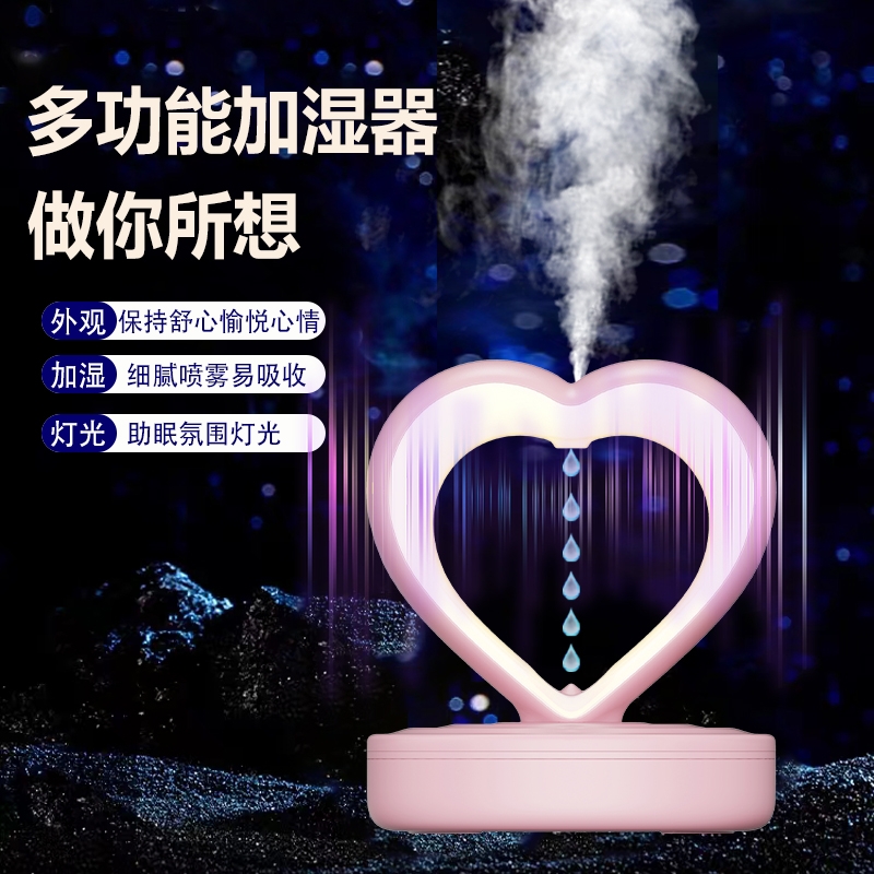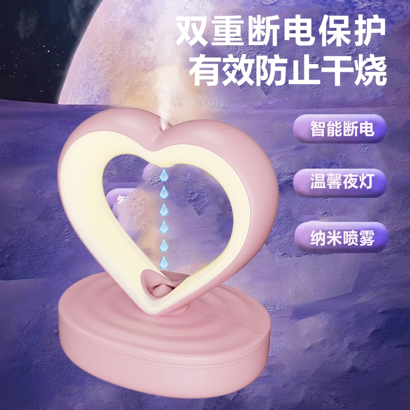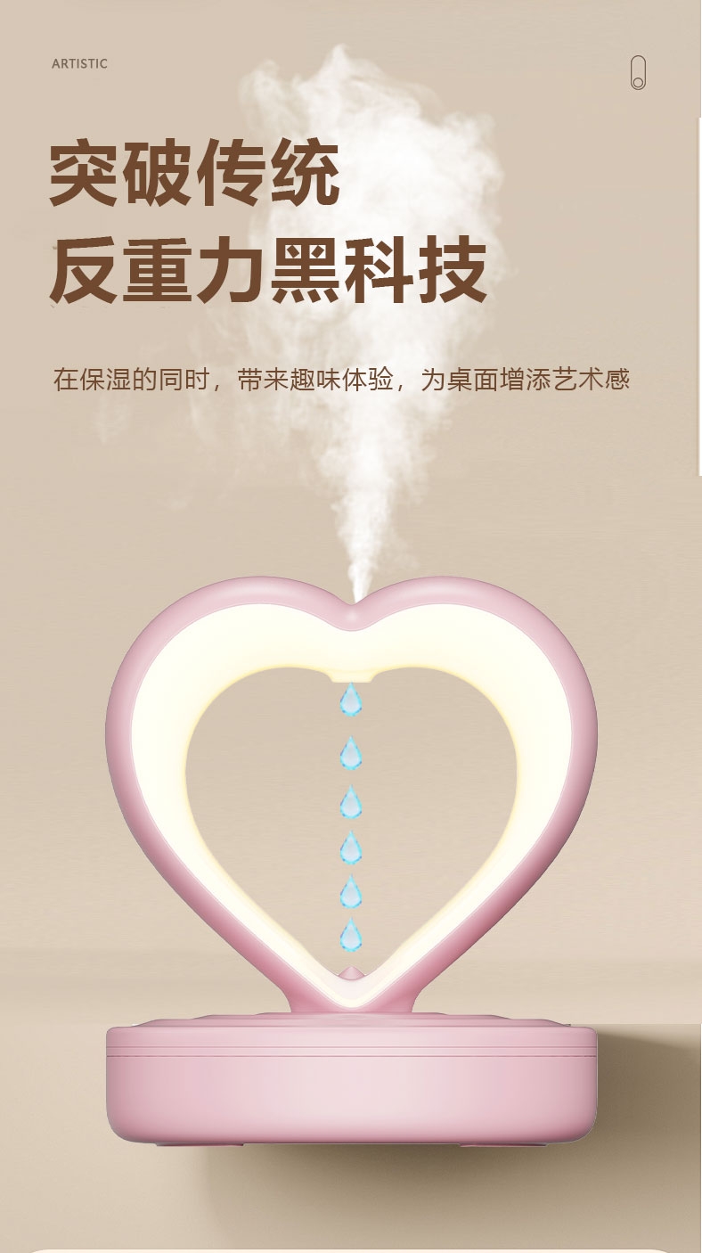 心形造型,爱心表白;反重力水流向上视觉效果;小夜灯照明