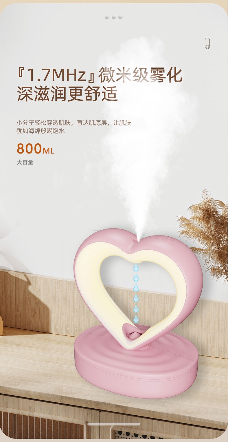 万吾 心形反重力加湿器喷雾补水仪X520