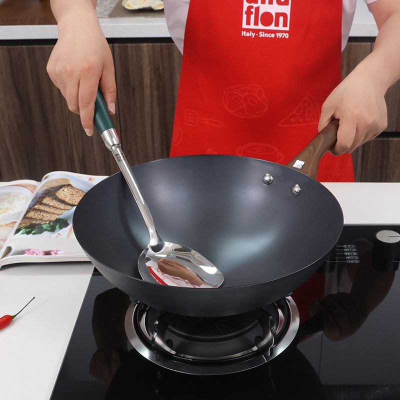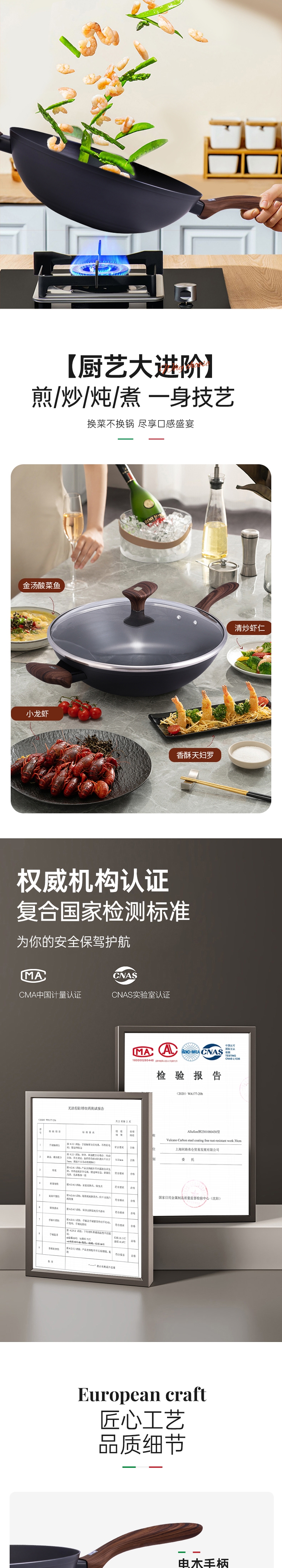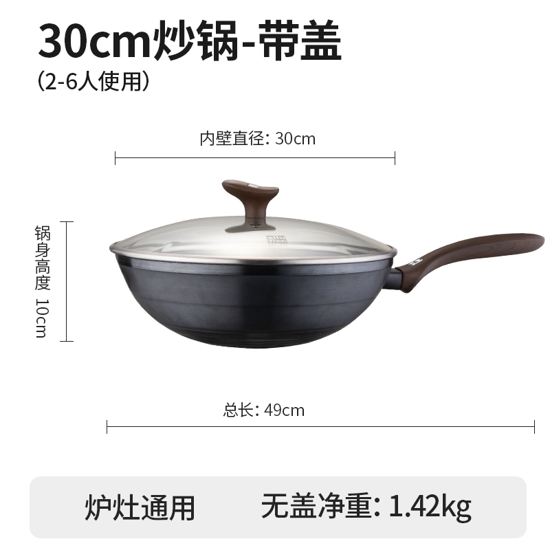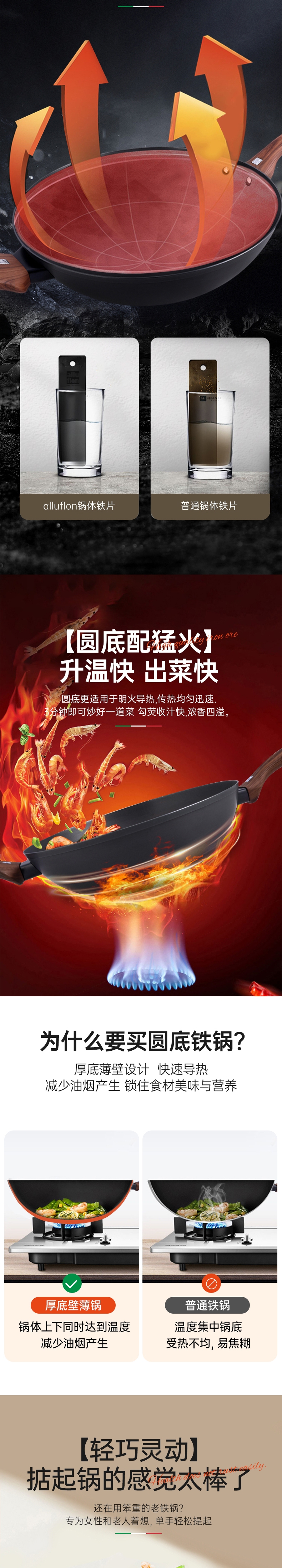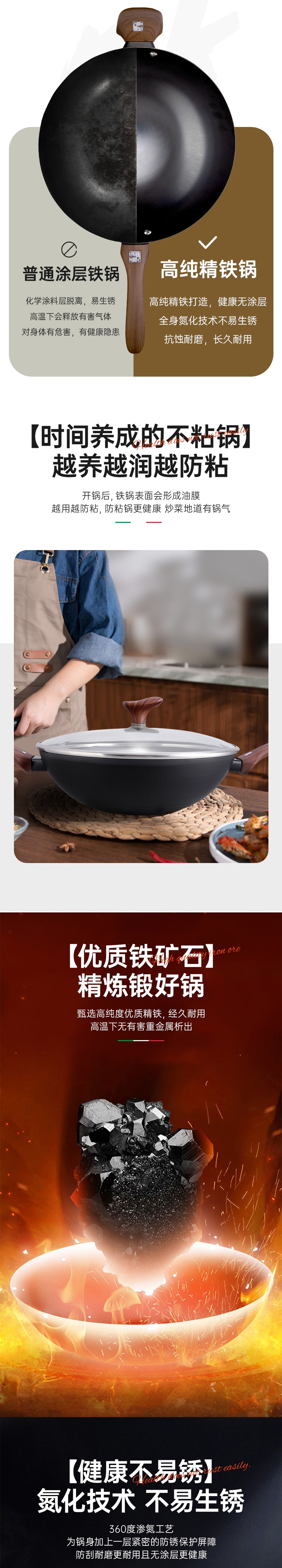 含铁量99.6%,无涂层更健康 精工氮化工艺、不易;双重高温炽炼、坚硬耐磨、锈不了;螺纹锅底防滑聚火节能