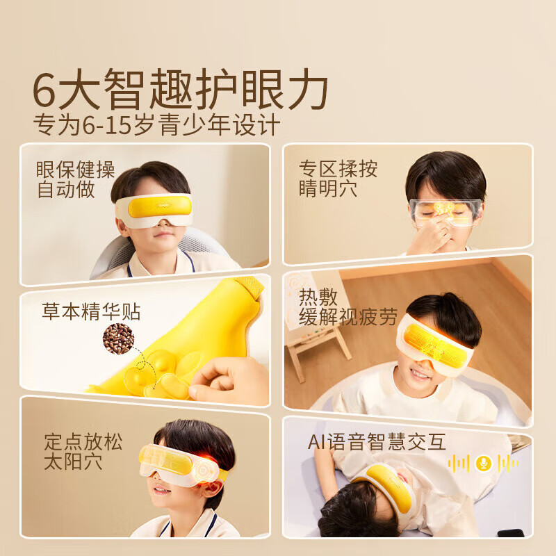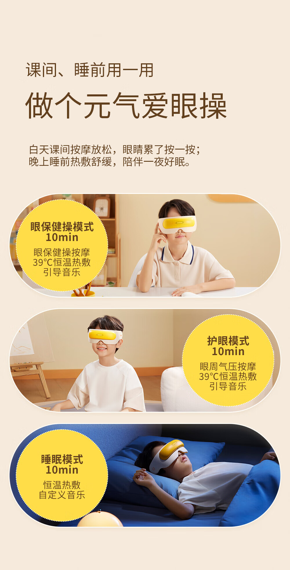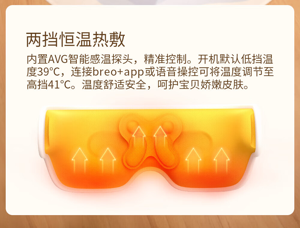 一机两用,更智能,更有趣;两挡恒温热敷:内置AVG智能感温探头,精准控制;蝶形气囊与眼眶气囊为分体式设计,按摩更专业
