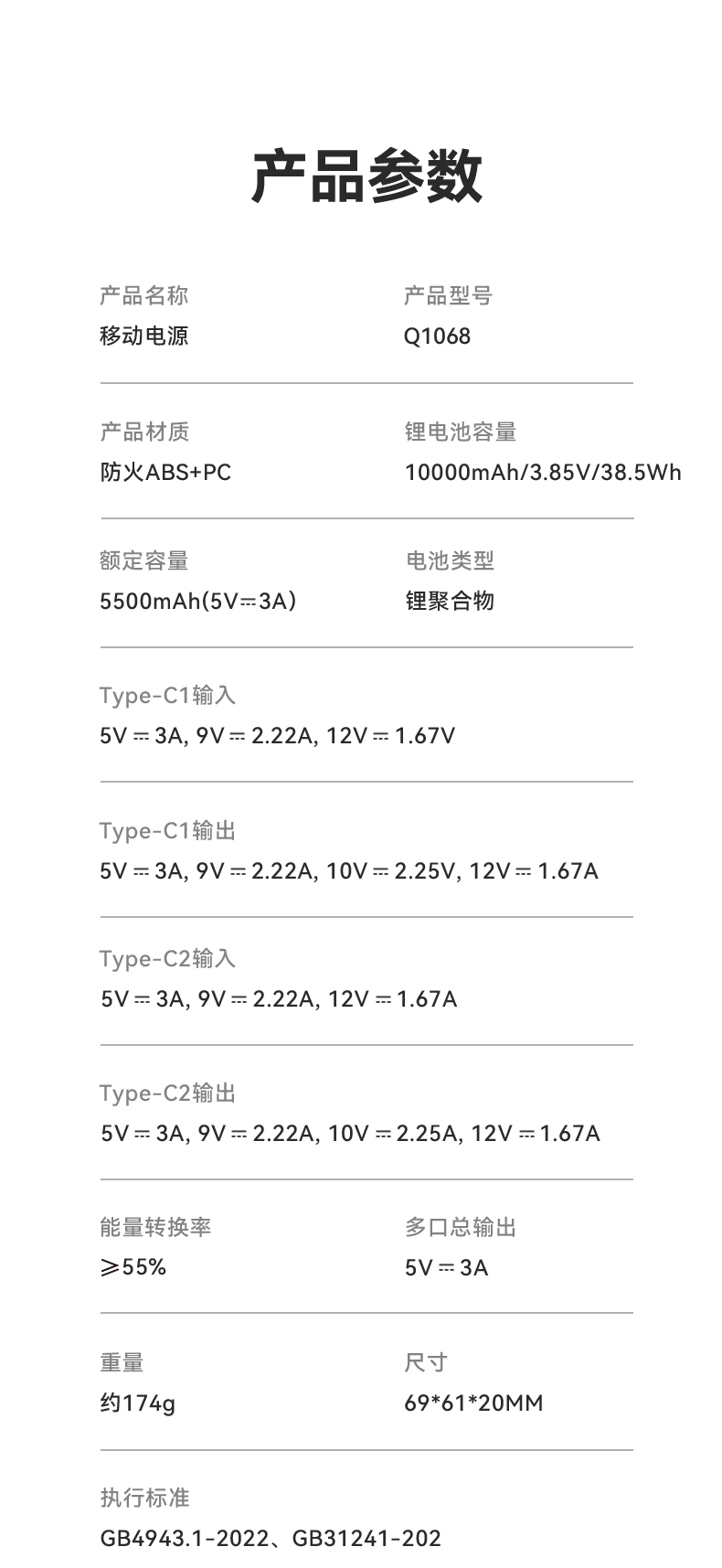 3C新国标安全认证可上飞机,CE欧盟认证跨境也能用;小方形机身仅粉饼盒大小,出行无忧 ;自带快充线,iphone17 30分钟可充至50%;10000mAh大容量,能量满满自带LED电量数显