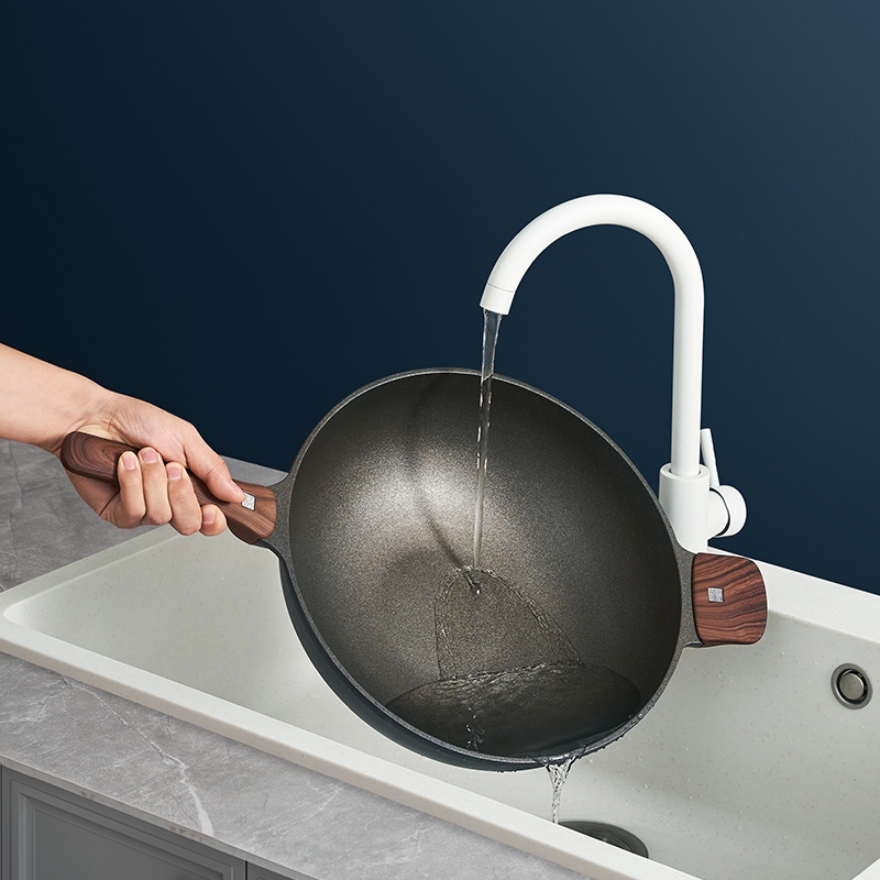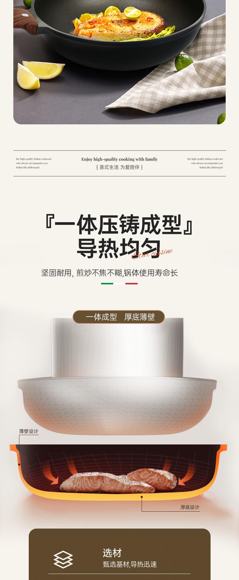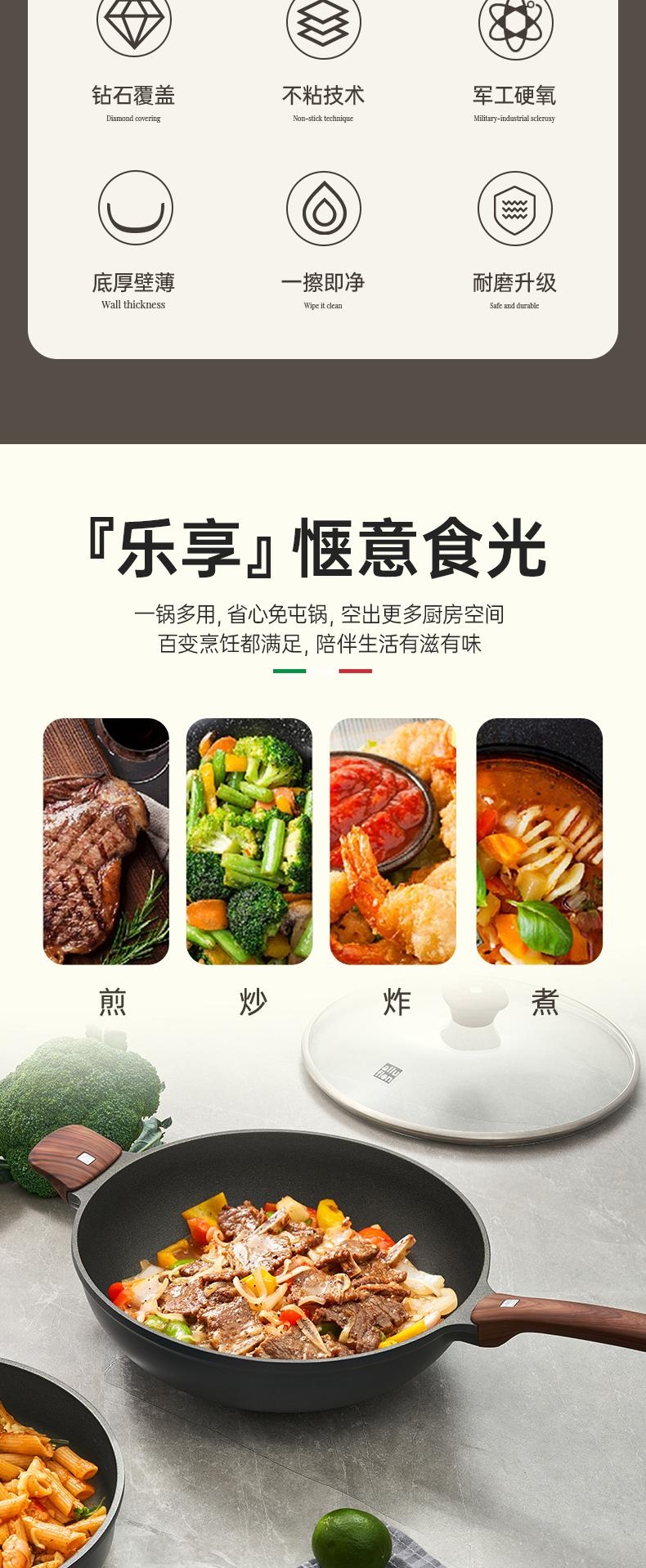95万次超耐磨不粘;五芯一体仿压铸工艺;一款含钻的不粘锅;军工硬氧强化、耐磨、耐腐蚀、抗酸碱;