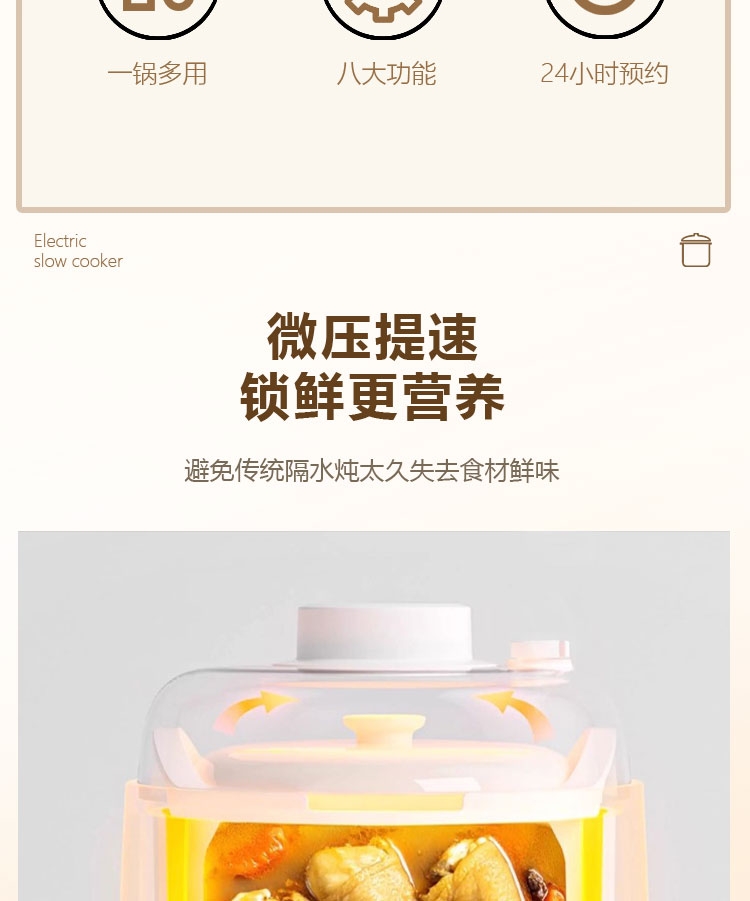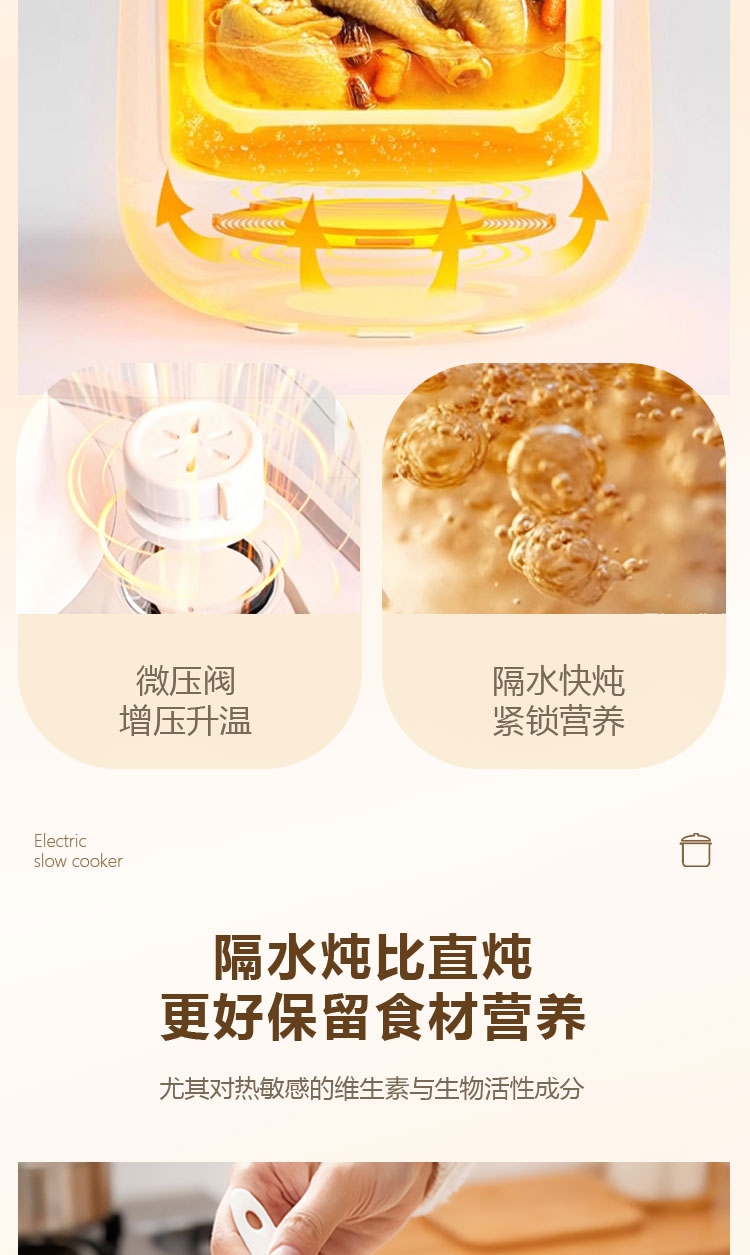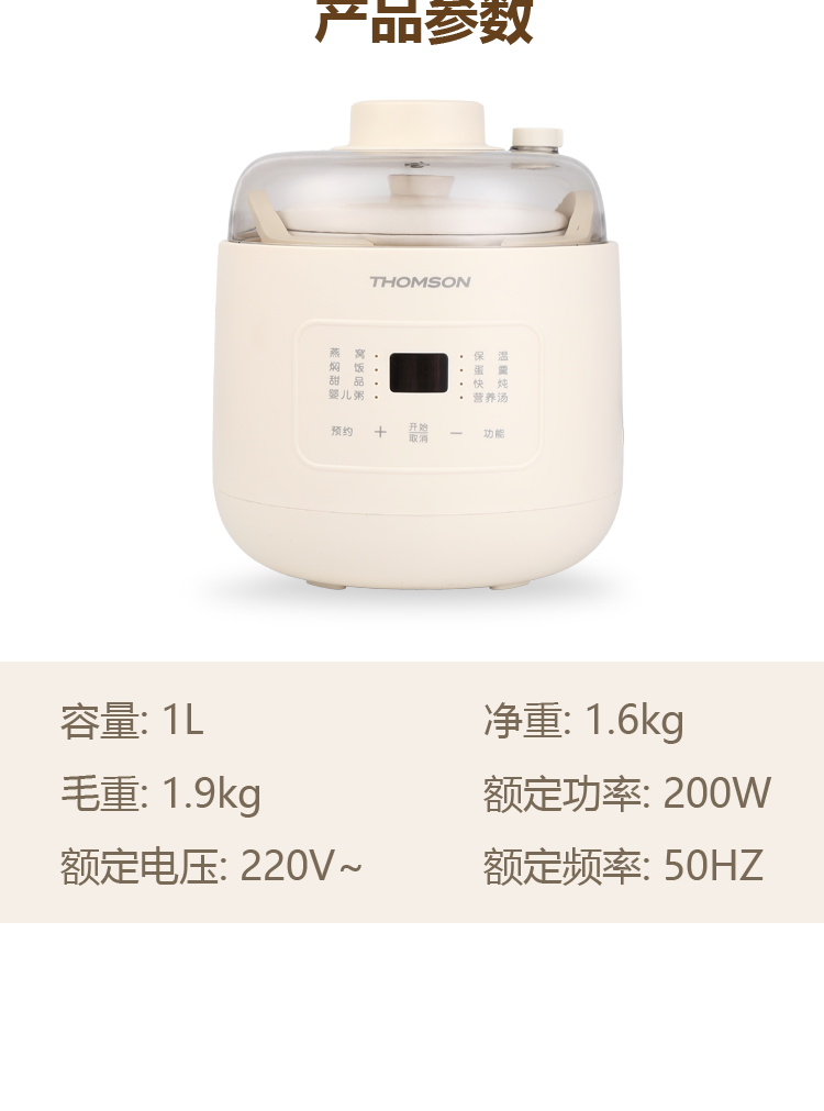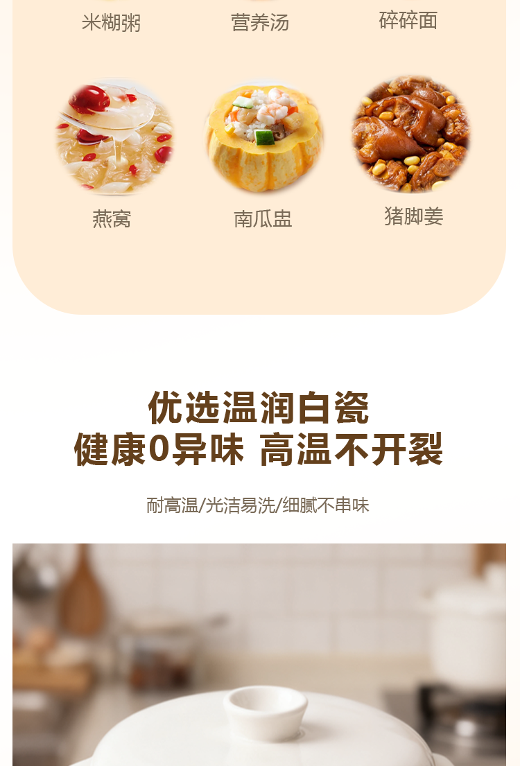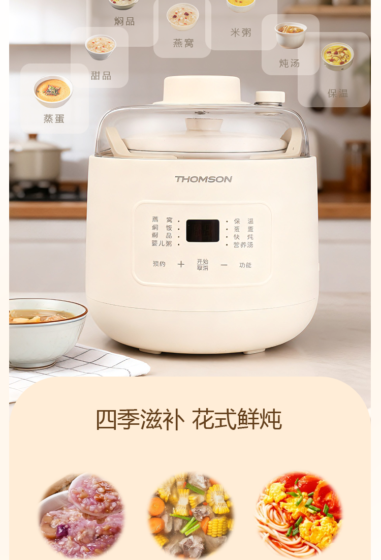 功能:燕窝,营养蒸,蒸蛋羹,炖,卤肉,煮白粥,煮杂粮粥