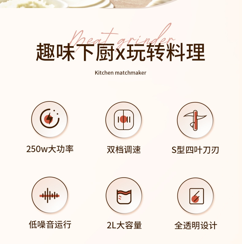 双档调速 细腻速绞;双层立体四刀刃;2L大容量设计