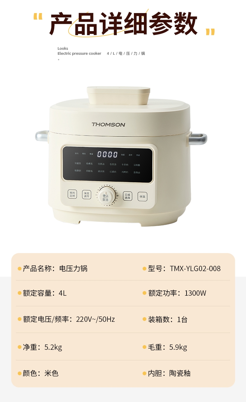 汤姆逊 4L电压力锅TMX-YLG02-008