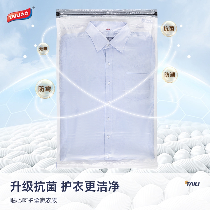 专利免抽气 秒速收纳不费劲;4重专利 持久密封;5层复合 加厚更耐用;添加Ag+银离子 强效抑菌 护衣更洁净
