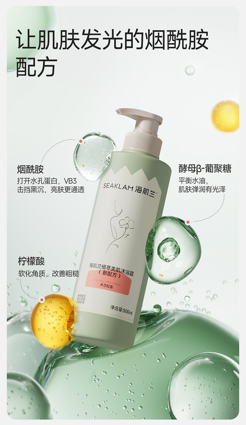 让肌肤发光的烟酰胺配方;面护级温和氨基酸洗完不干;浸润香水浴把清香披在身上